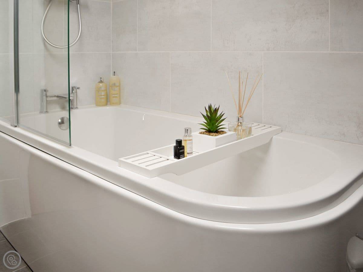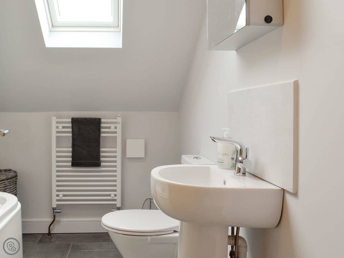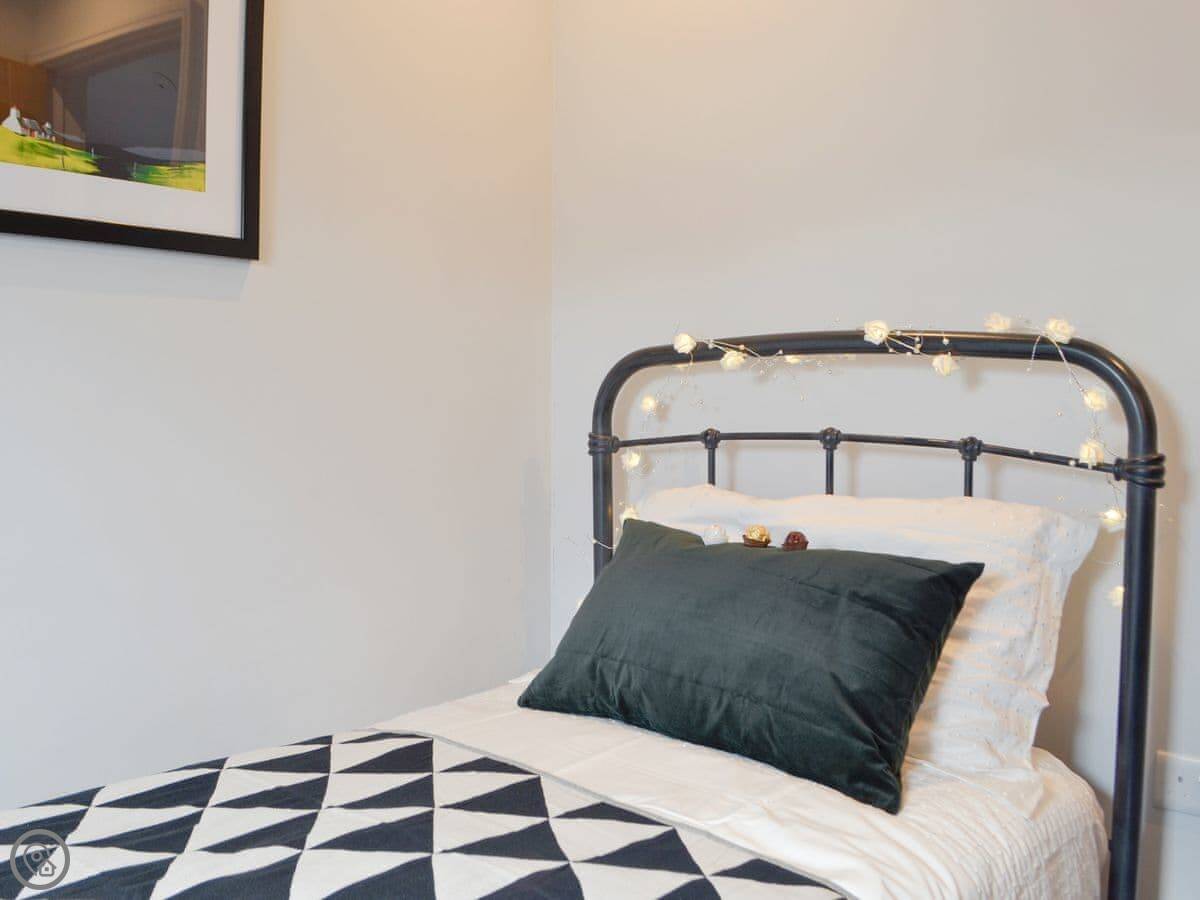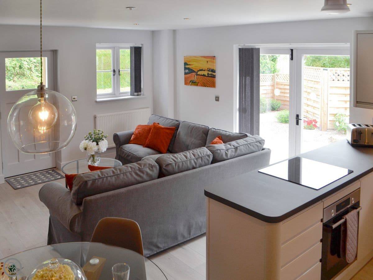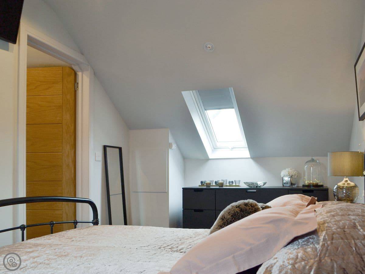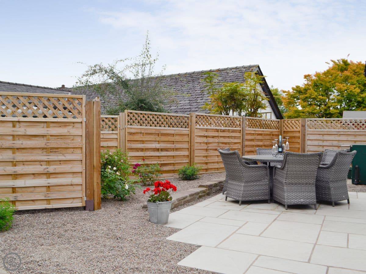There's a wood burner in the main room. Patio doors lead out to a private courtyard. You get a dishwasher, washing machine, WiFi, and a TV. Bedding and towels are included.