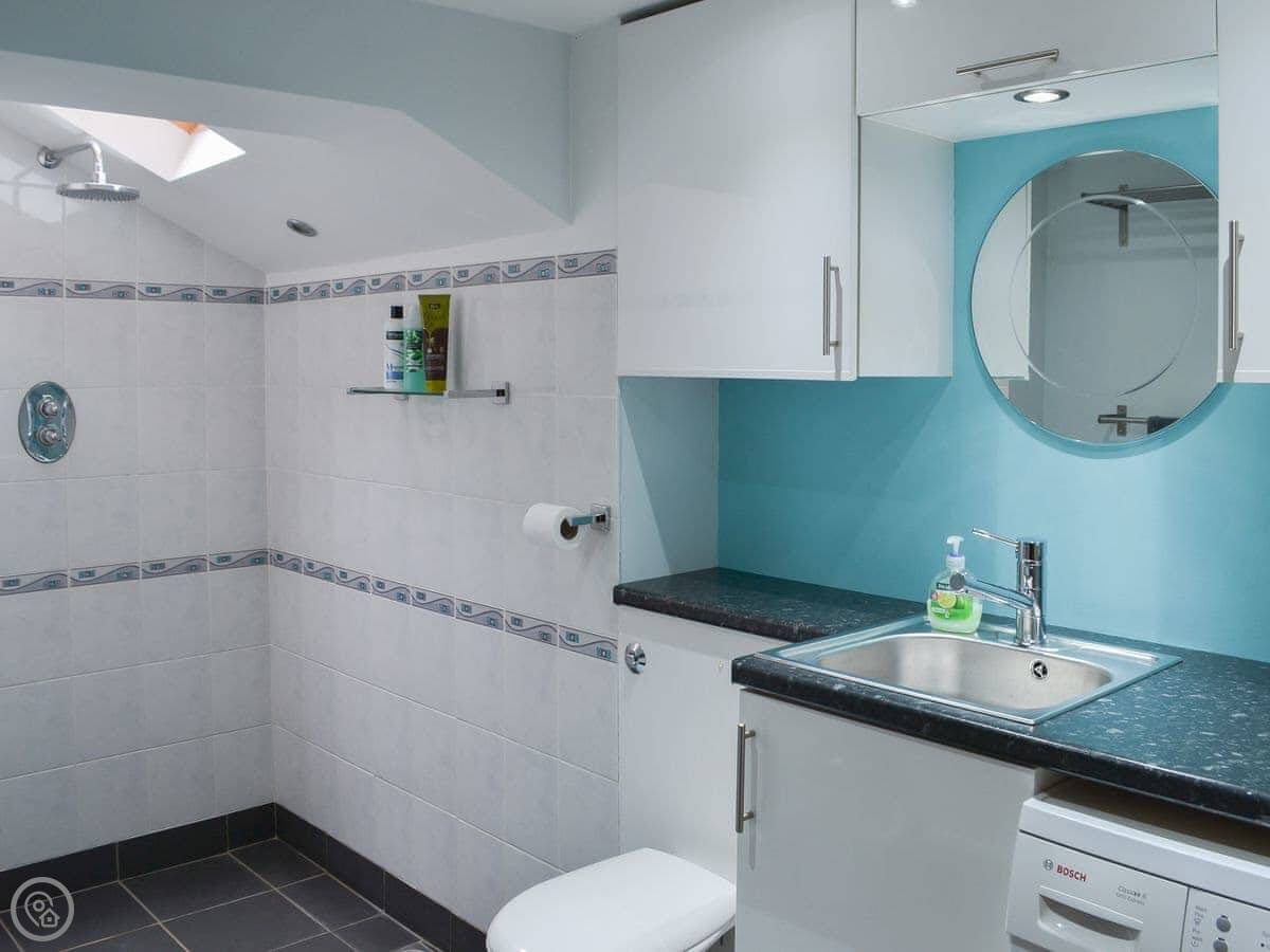 In terms of what's there: there's a washing machine, a dishwasher, a woodburner, and a games room in the outbuilding. Bicycle storage is available. Bedding and towels are included. There's a cot, a highchair, and a stairgate if you need them. The parking is on site. You can bring up to two dogs.