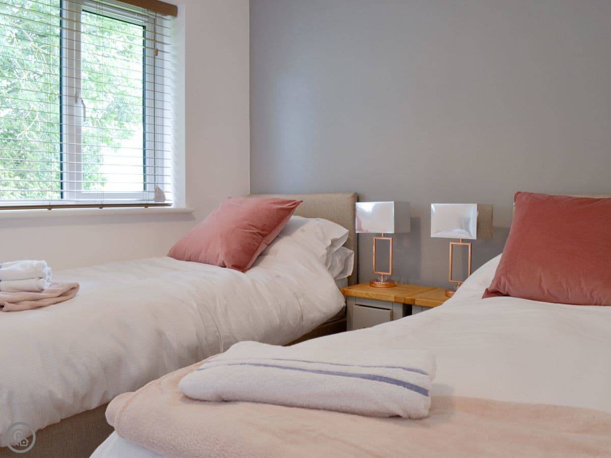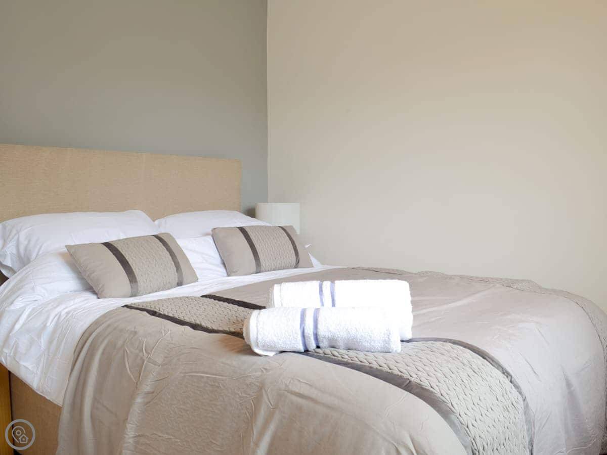 It sleeps six, with three bedrooms and two bathrooms. It's a 4 Star place, which is good. It's clean and well looked after. You get your own bit of garden out the front with a table and a barbecue.