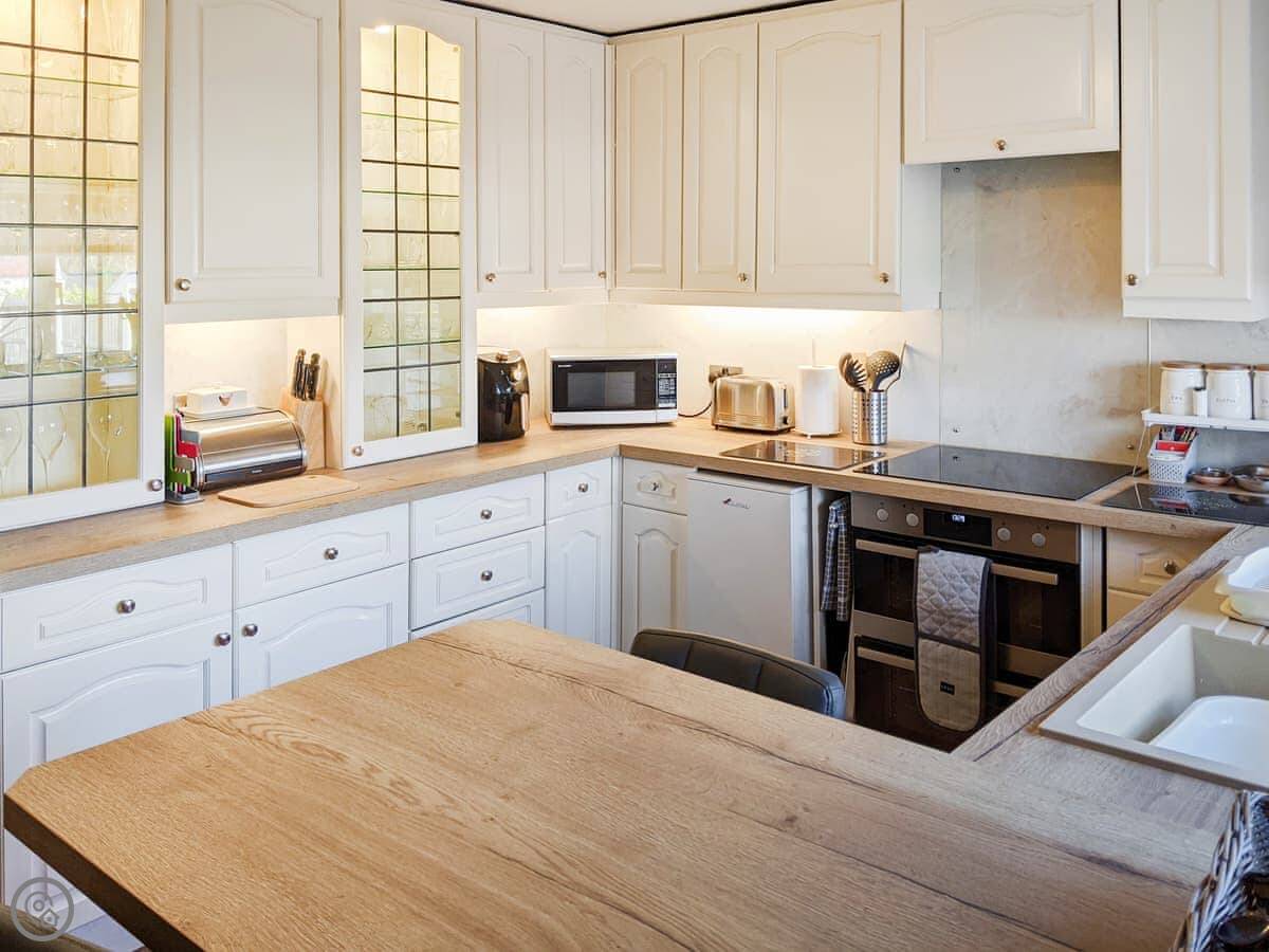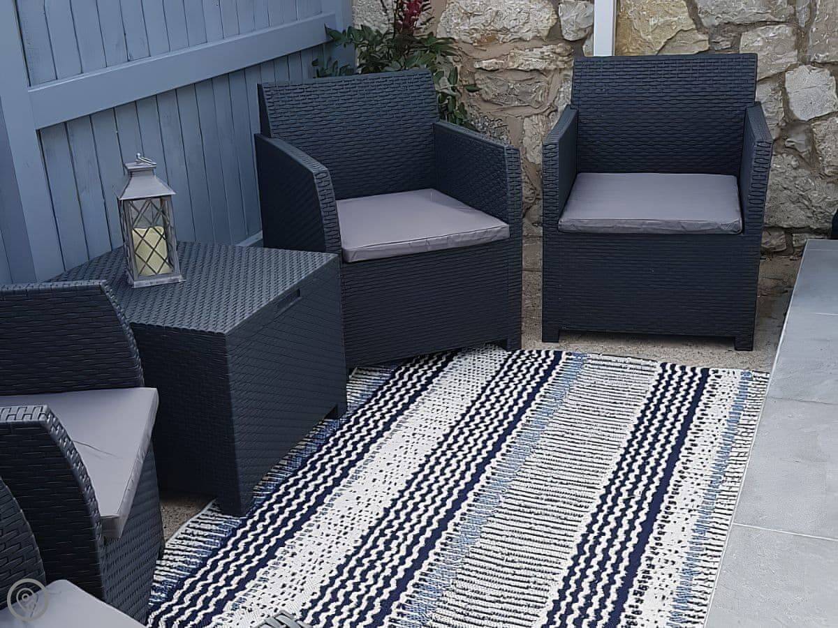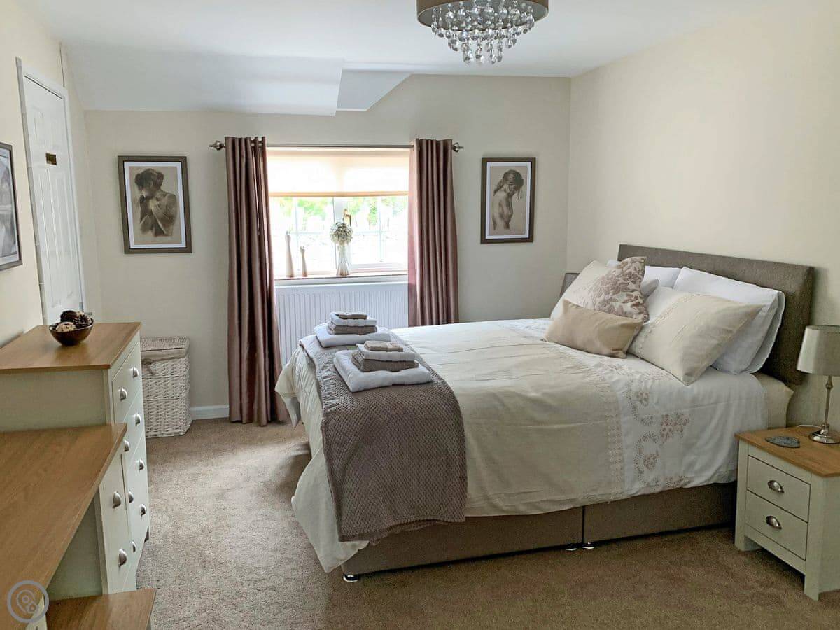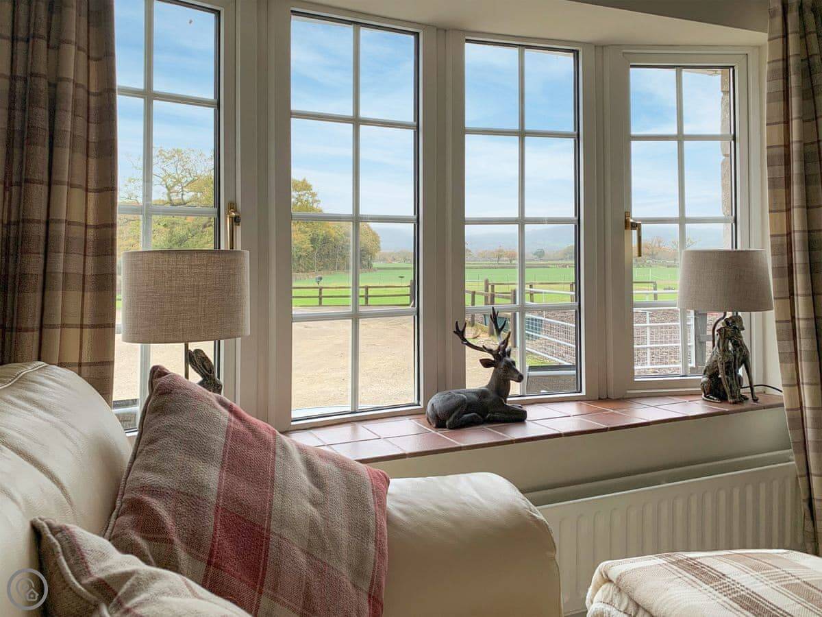 This is The Paddock. It's a bungalow on our farm near Denbigh. You'll have your own bit of garden and patio. The views are over fields.