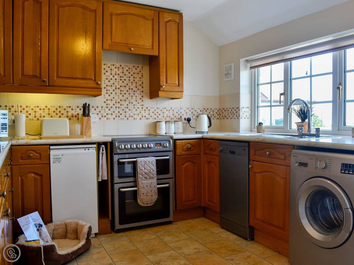 Inside, there's a washing machine and a dishwasher. WiFi works fine. All the bedding and towels are included. There's parking right outside.