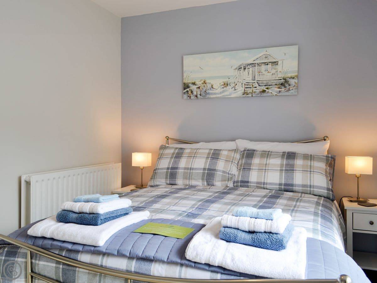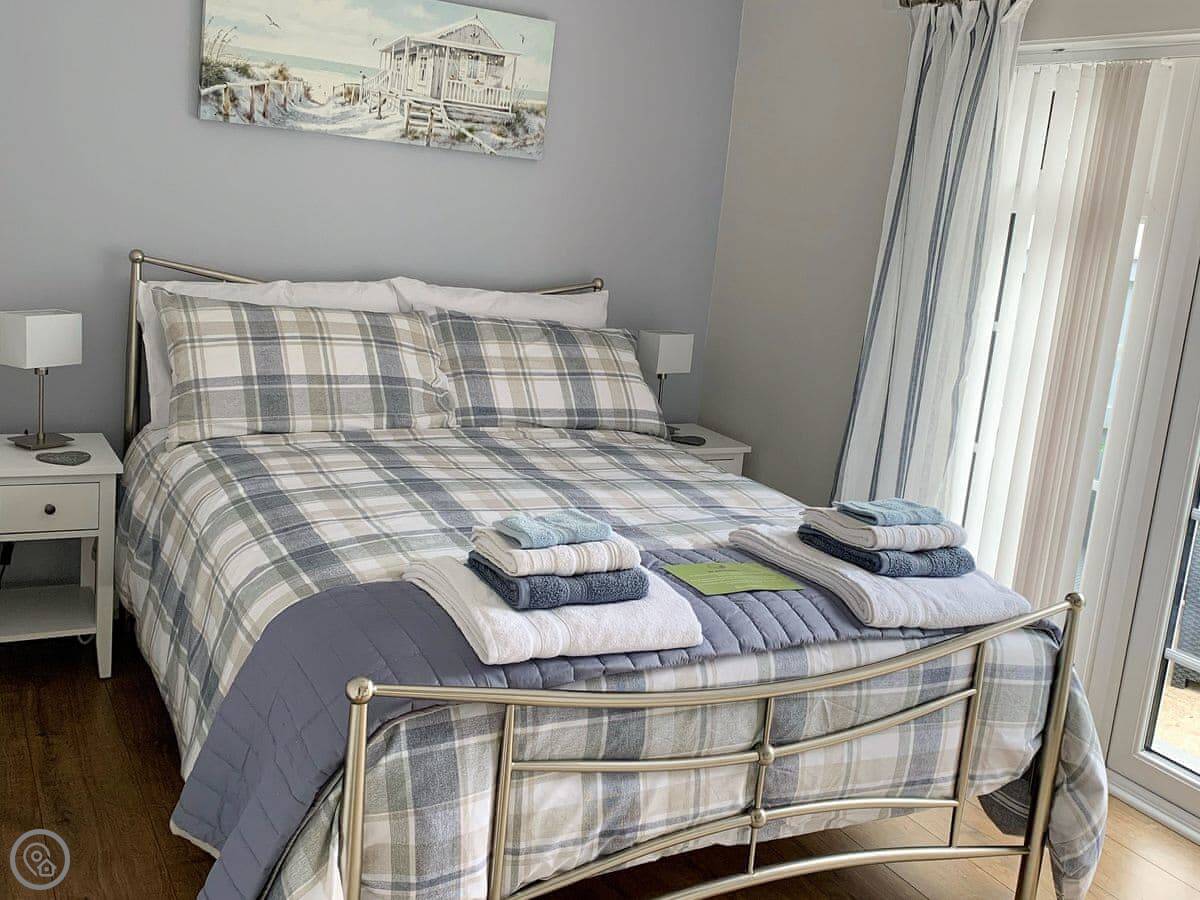 It sleeps four in two bedrooms. One has a kingsize bed, the other has French doors out to the patio. There's one bathroom with a shower. It's a 4 Star place, so it's comfortable and everything works. Being a bungalow, there are no stairs to worry about.