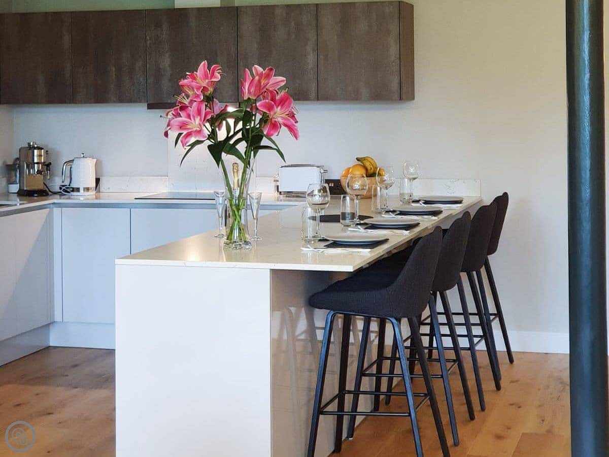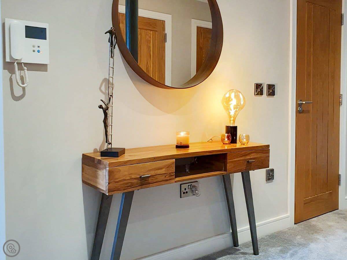 Spindle Lilly is a perfect apartment set in a beautiful, rural setting and is 3 miles south of Skipton and the gateway to the North York Moors National Park. This first floor apartment boasts an open plan living space and a charming, south-facing balcony which overlooks open fields with grazing sheep and rabbits playing. In the distance you can see the small railway station of Cononley, with direct links to Skipton, Leeds and Carlise. The apartment has two bedrooms, one with a stunning en-suite. The second bedroom can be a double or a twin, and the big family bathroom has a beautiful bathtub and shower.