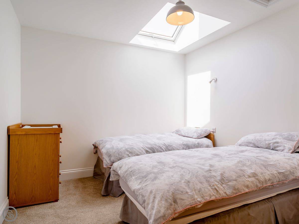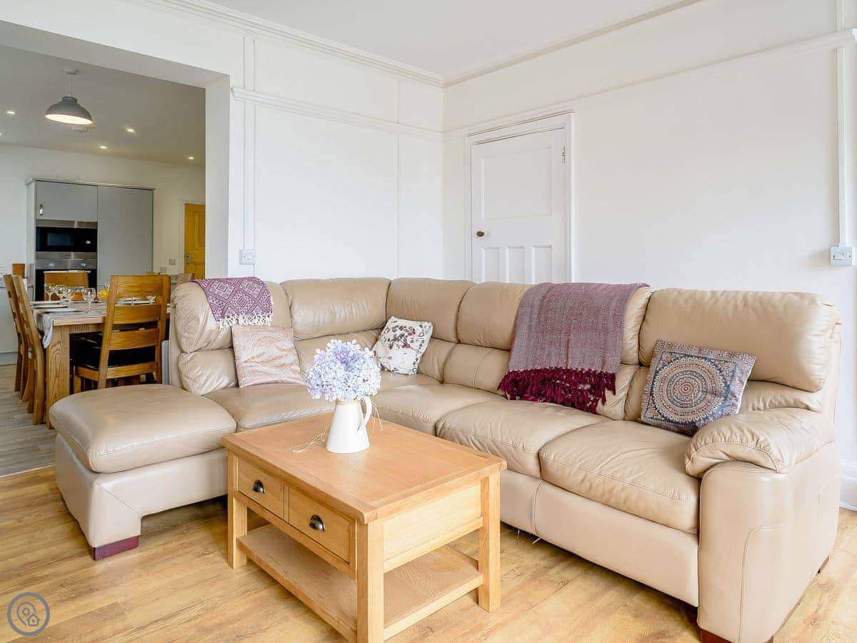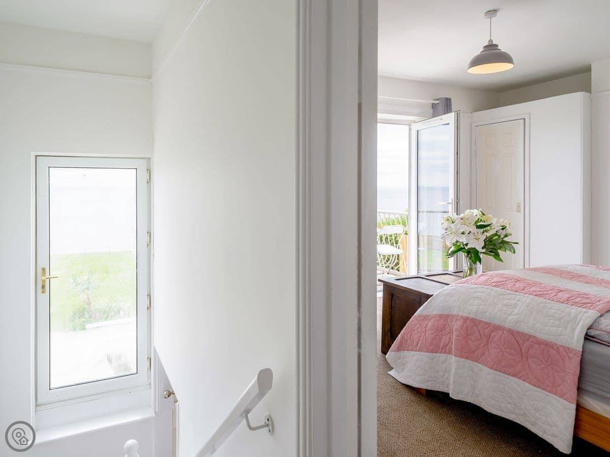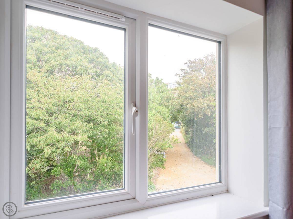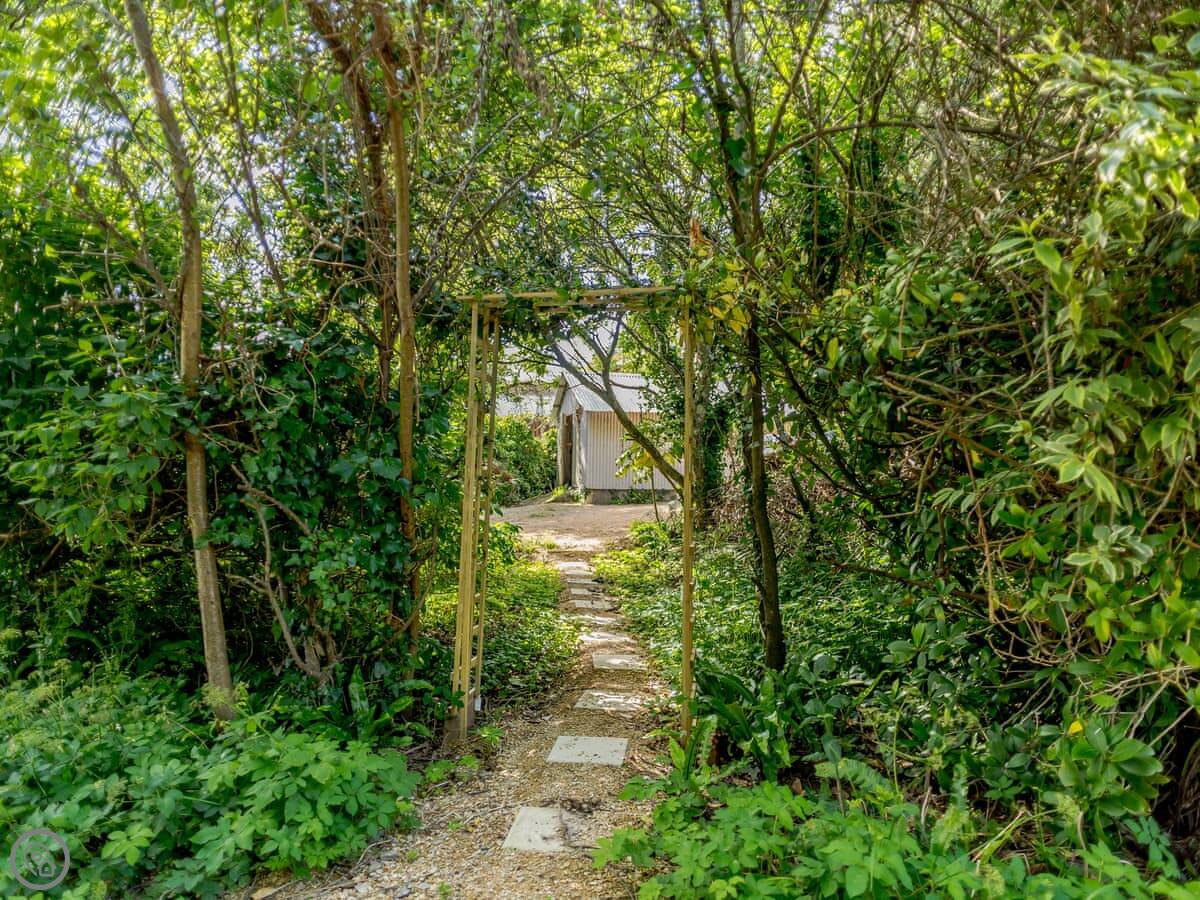The place is part of a private estate with gardens. It's next to the beach, a dog-friendly one. You can see the sea from inside. It feels quite separate, even though it's part of a bigger property.