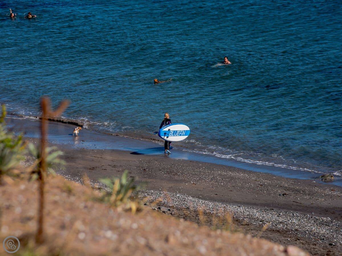 For a longer walk, you can follow the coastal path east towards Seaton or west towards Portwrinkle. Looe is about a fifteen-minute drive. Polperro is a bit further, maybe twenty-five minutes. It's a very pretty old fishing village. The National Trust South Cornwall page has good information on the local coastline. The Cornwall Council rights of way site is useful for walkers.