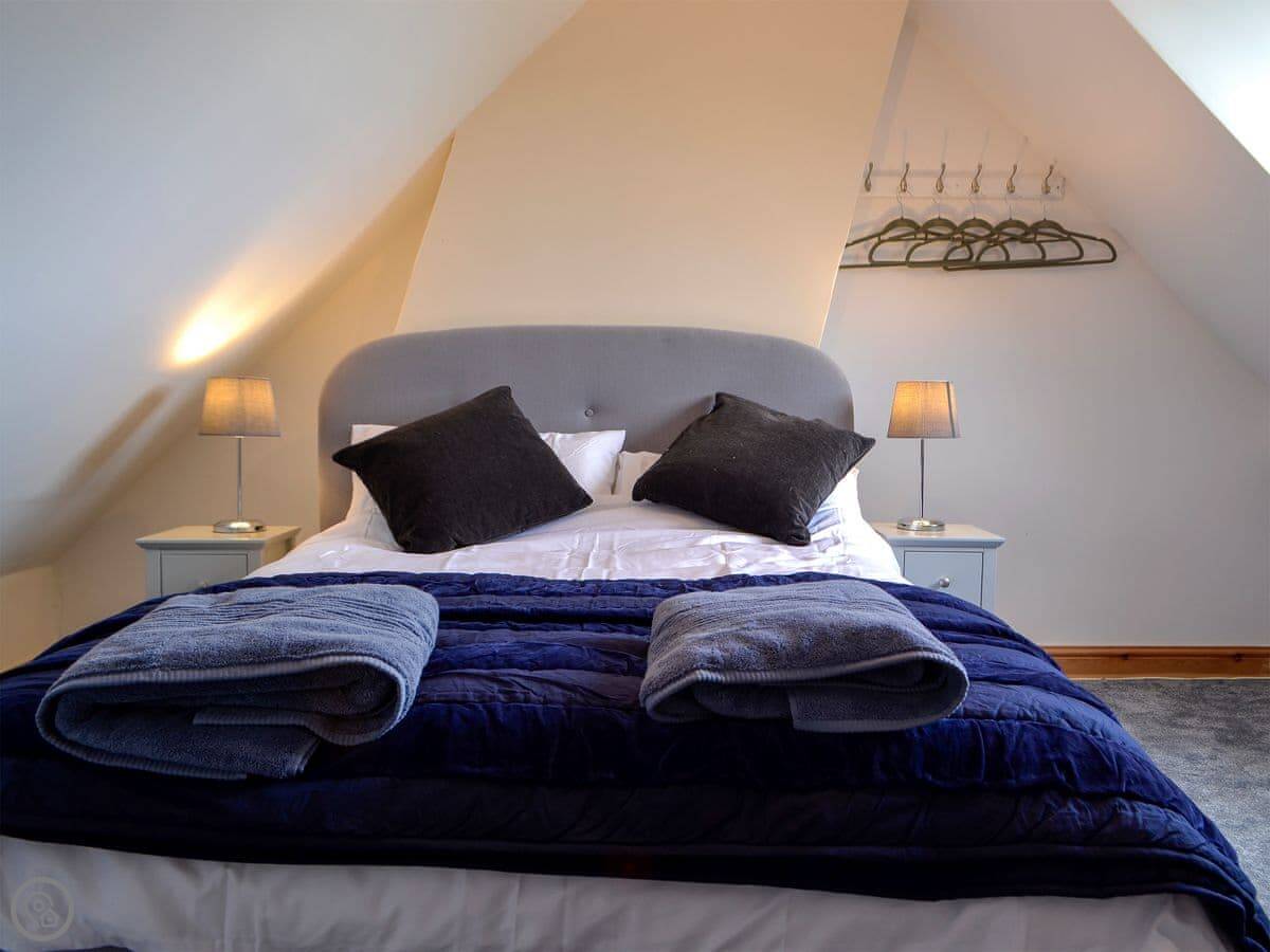 It sleeps six, three bedrooms. Two of them are on the first floor and share a bathroom. The third is up in the attic, it's a double with its own shower room. Those attic stairs are a bit tighter than the main ones, just so you know.