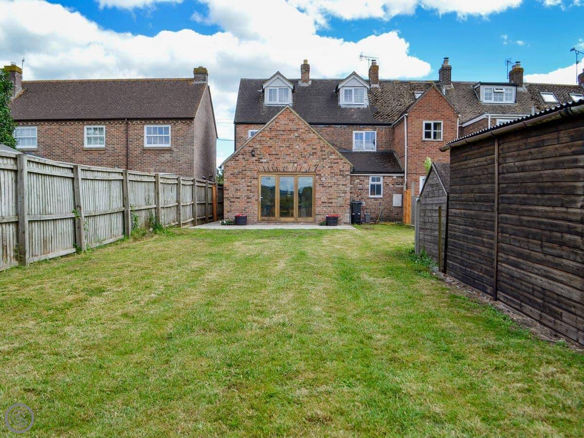 Downstairs, the back of the house opens right up with these big folding doors onto the garden. The garden is a good size, enclosed, mainly lawn. You can park off the road.