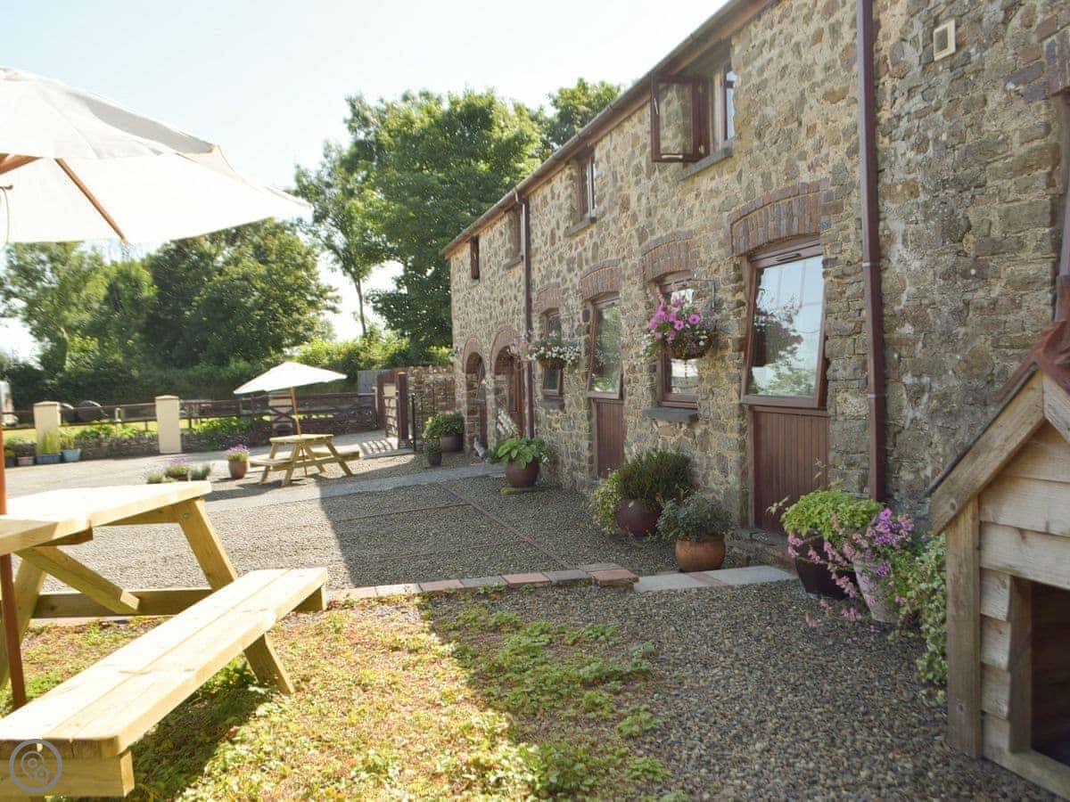 The Cart Shed is a converted farm building on our land in Wiston. It's part of a small group of cottages, so the garden and games room are shared with a few other guests, but there's plenty of space. You get your own patio spot.