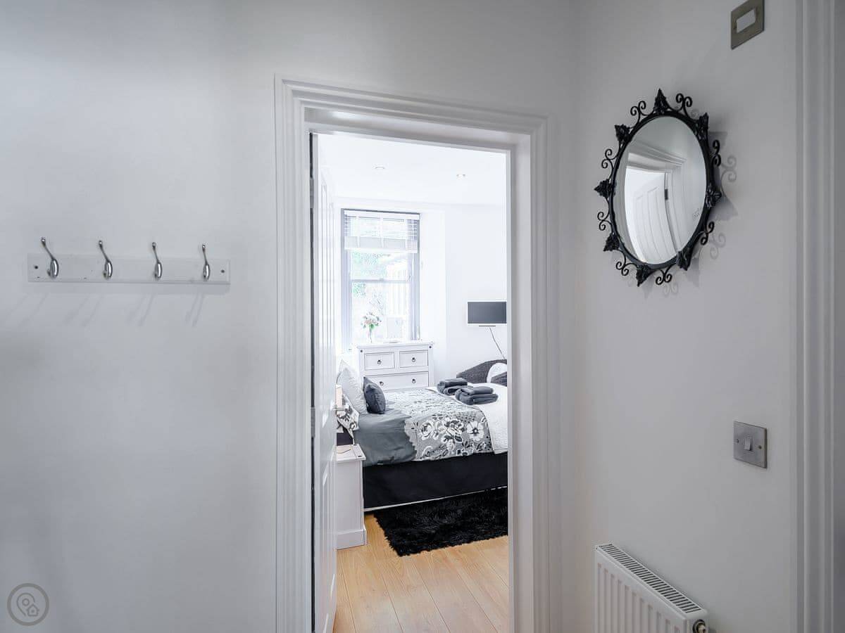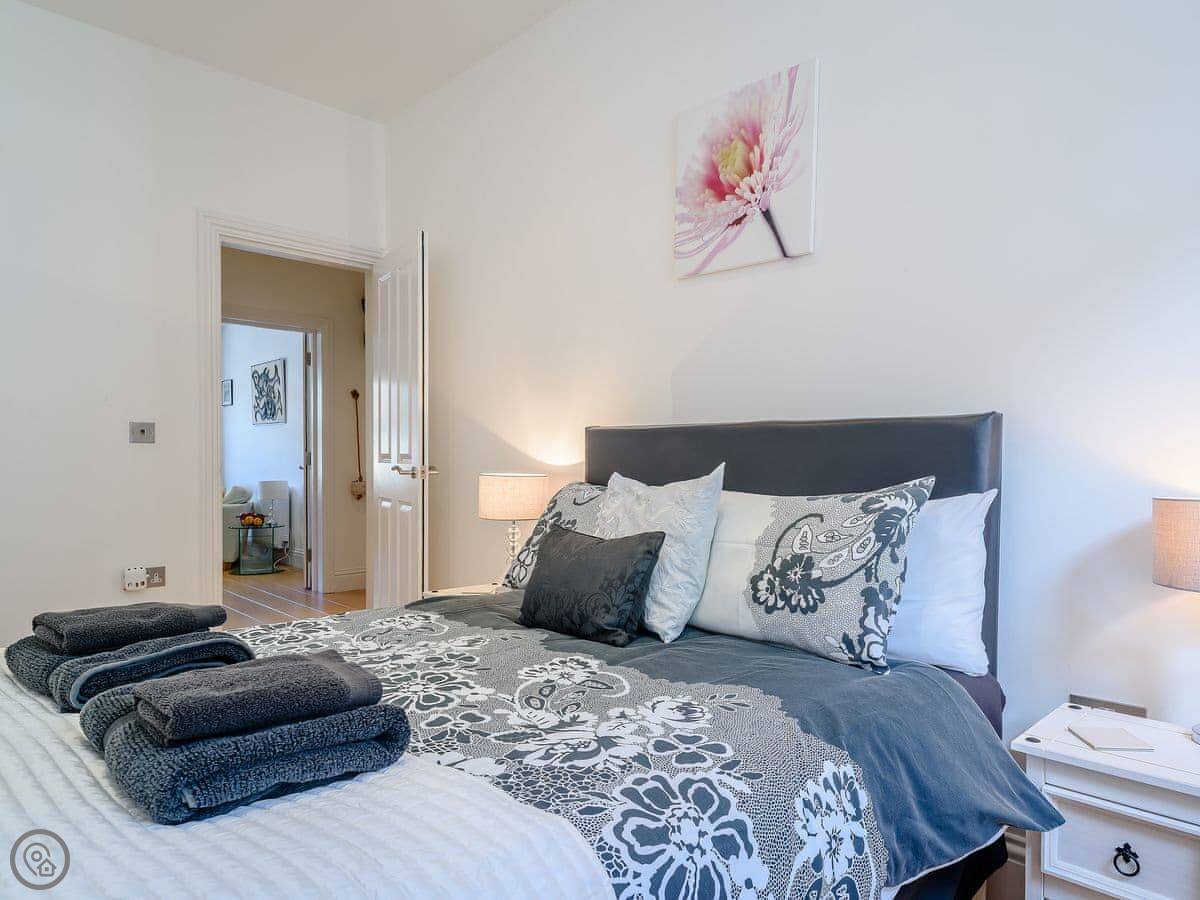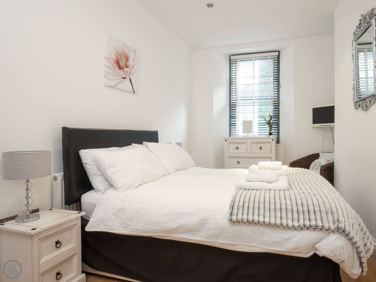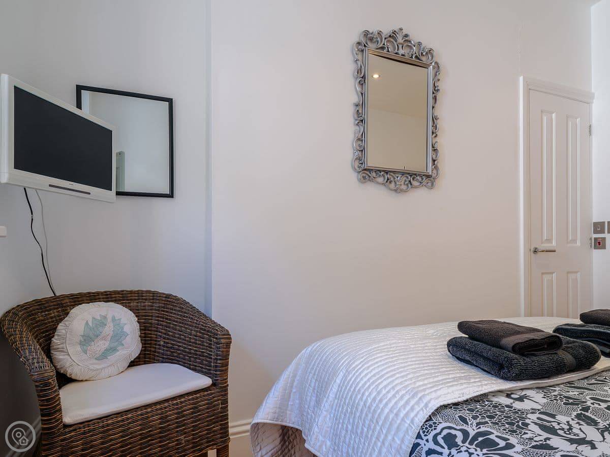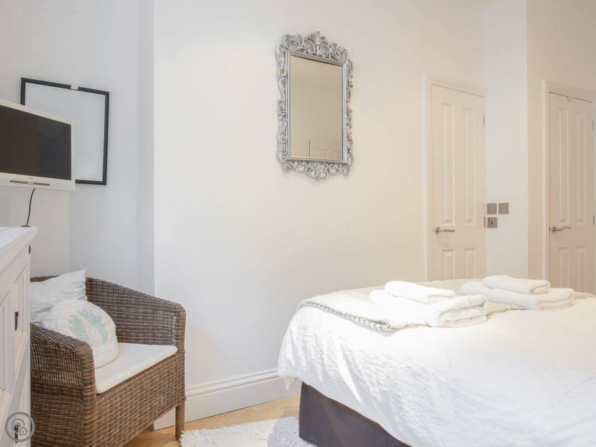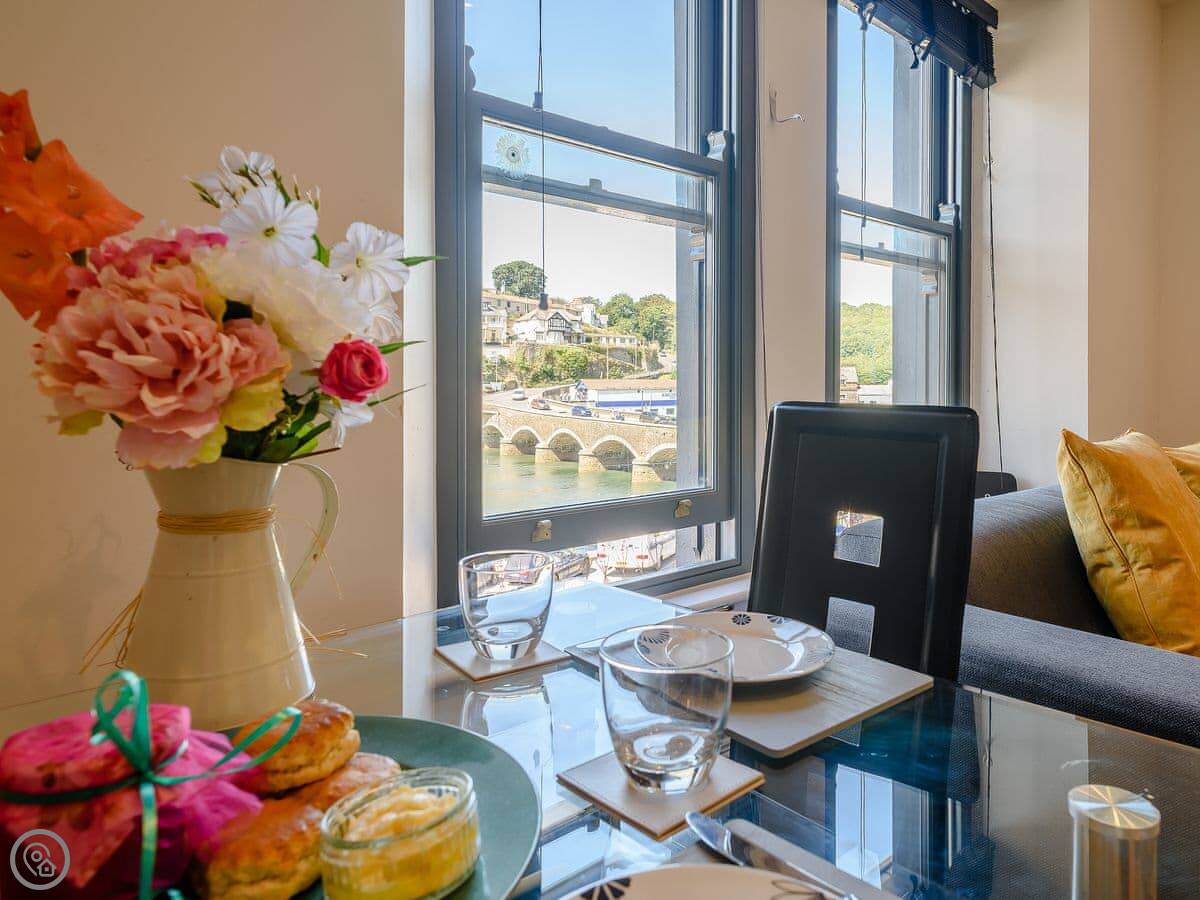 Water View is a flat on the second floor in Looe, just off the harbour. It's for two people, one bedroom and one bathroom. It's got a 4 Star rating which means it's been done up nicely. The main thing is the view. You look right out over the water from the living room. You can sit and watch the boats.