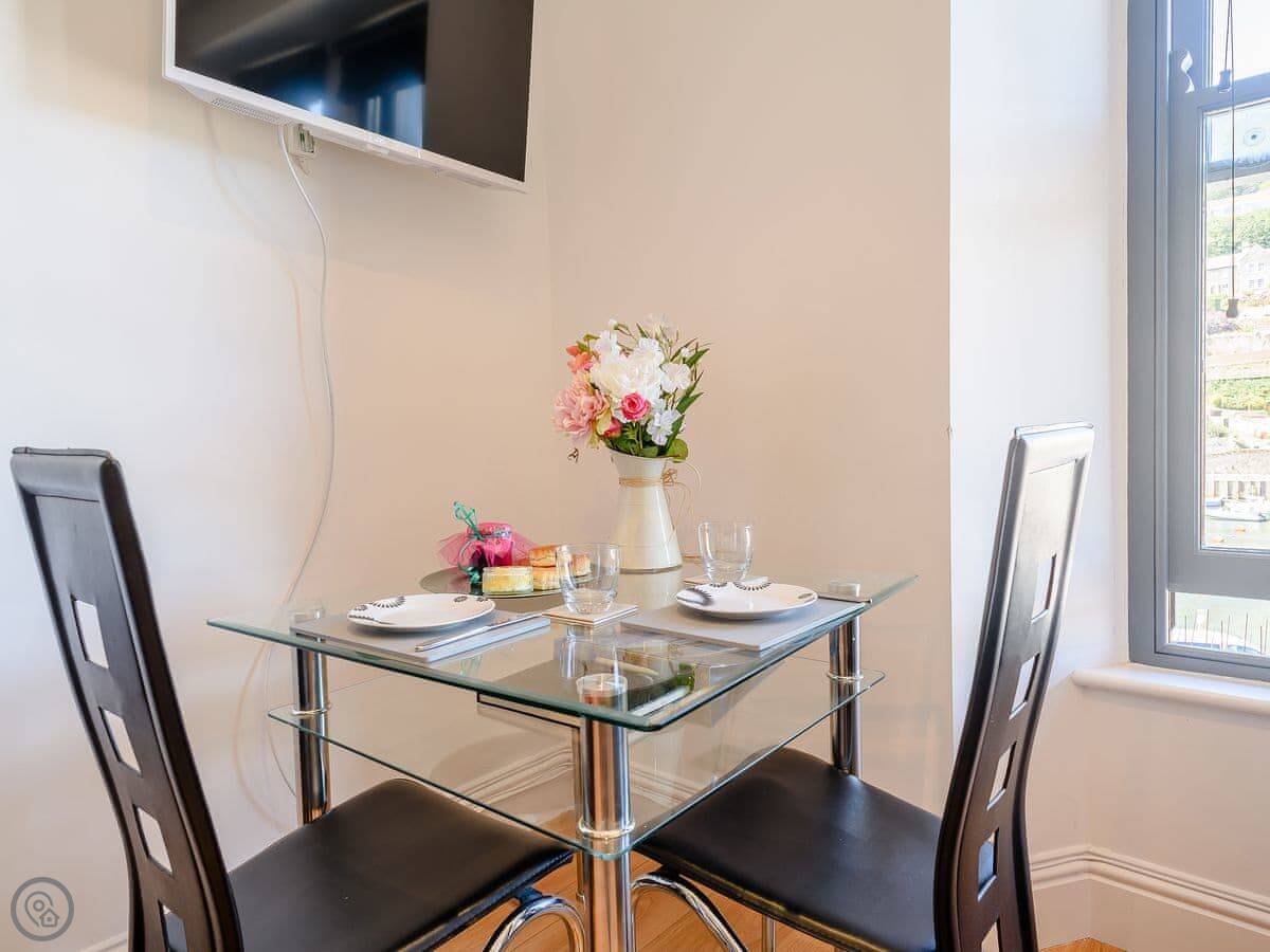 Just so you know, there are stairs to get up to the flat. And because it's central, it can be a bit lively outside on a summer evening. That's just Looe.