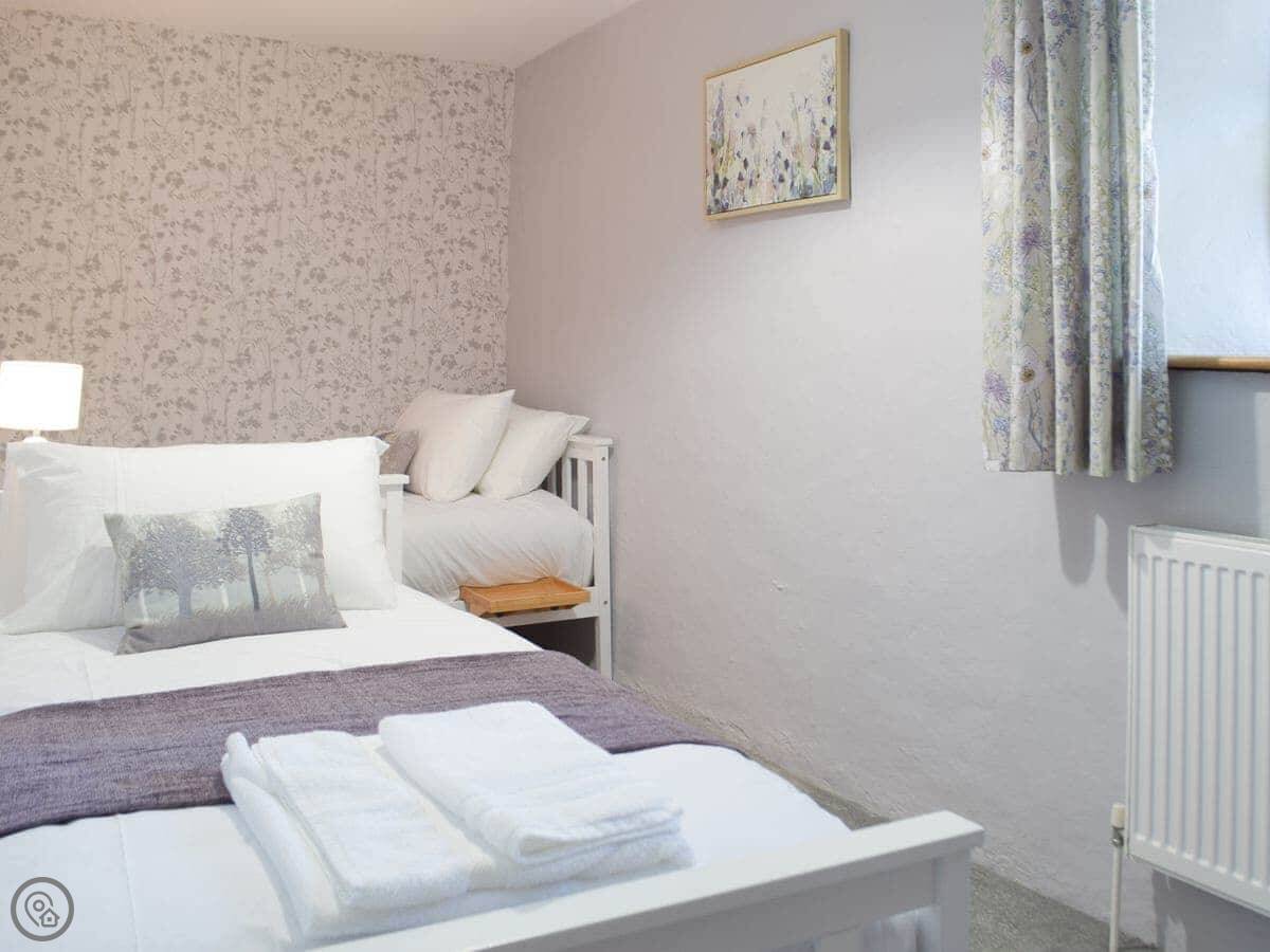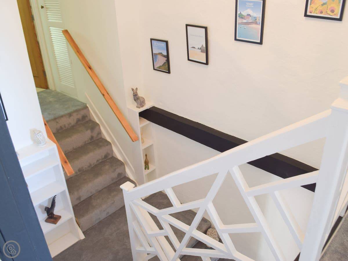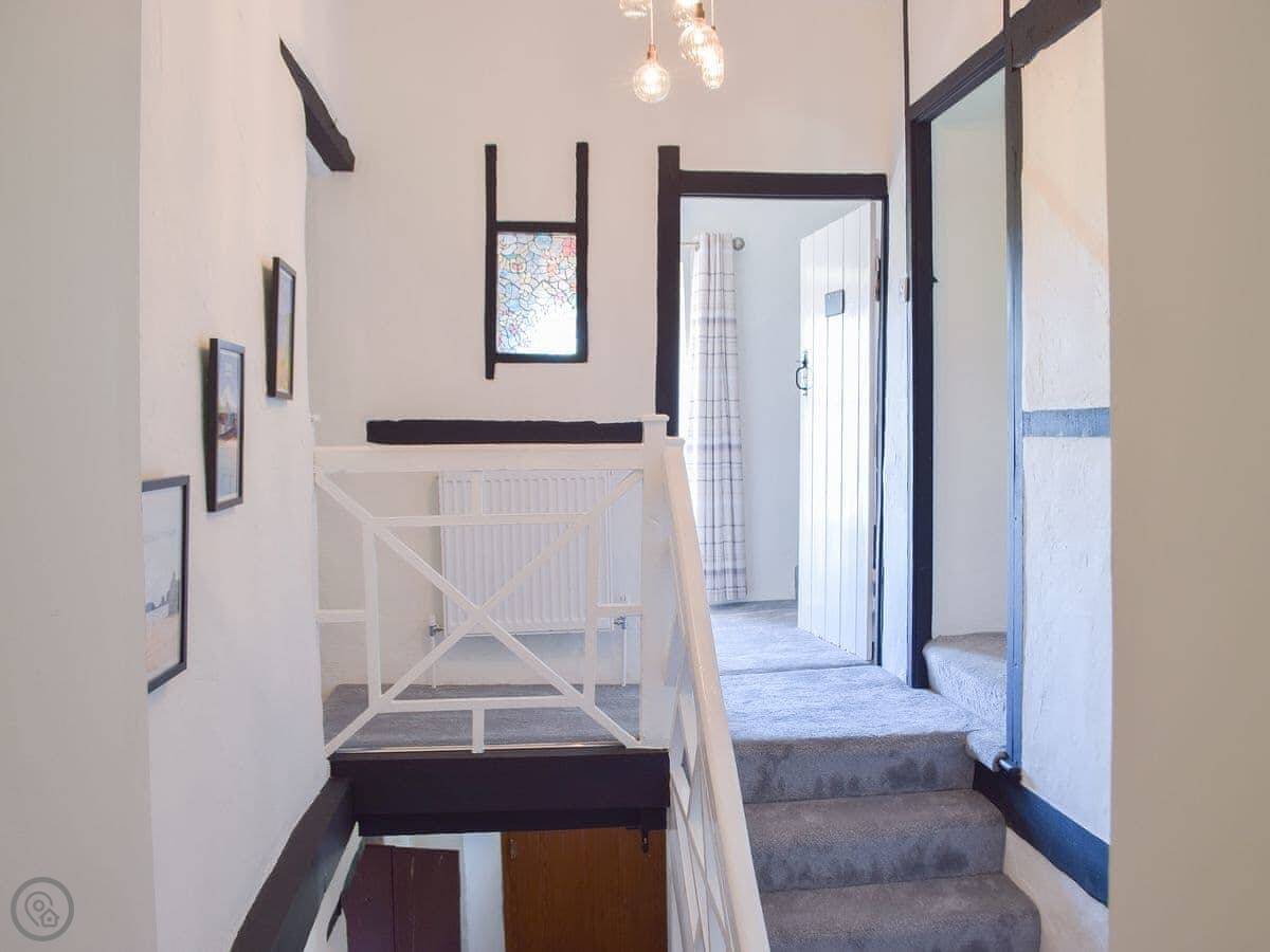 It sleeps eight people. Four bedrooms, two bathrooms. It's a 5 Star place, which means it's well-equipped and comfortable. The stairs are original, so they're steep and a bit uneven.