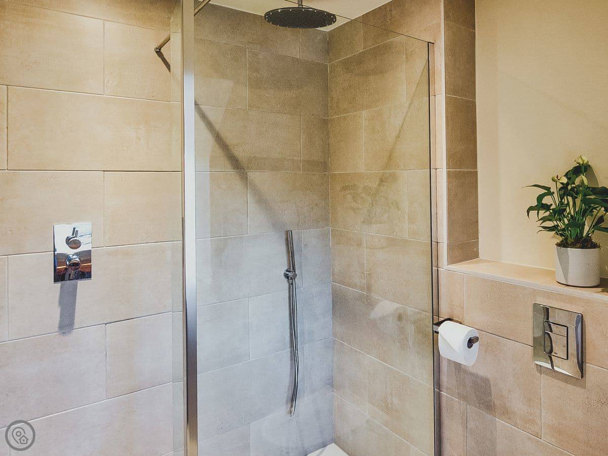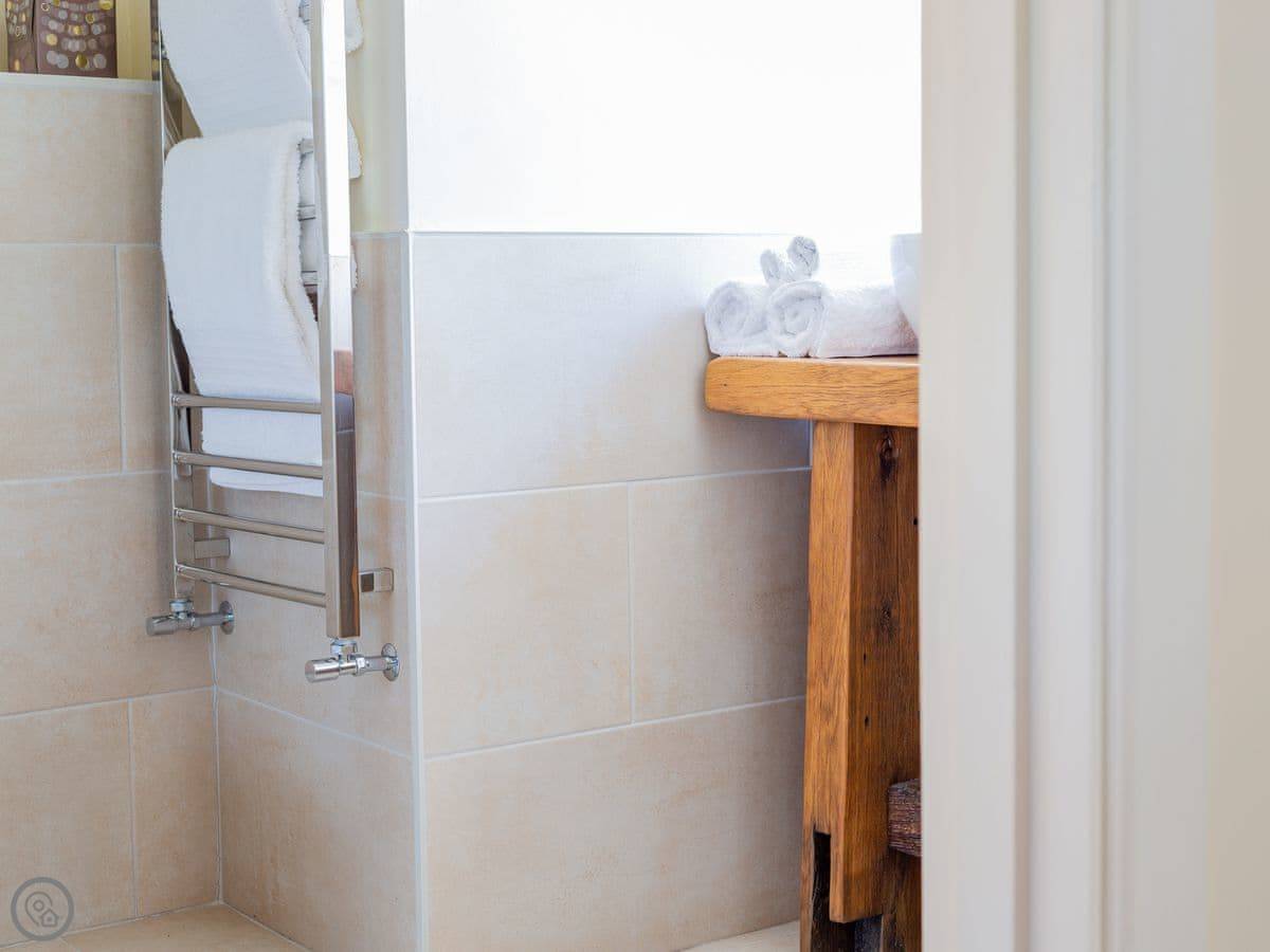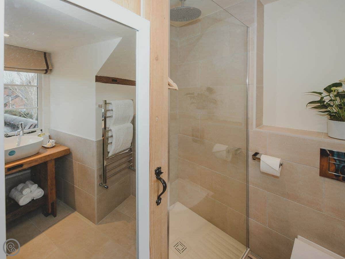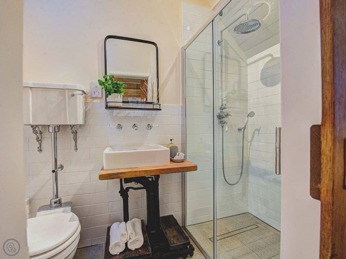 The cottage is for two people. There are two bedrooms and each one has its own bathroom. It has a 5 Star rating, which means it's well-finished. The ground floor is wheelchair accessible, though the cottage itself isn't fully adapted. The stairs inside are narrow, like most old cottages.