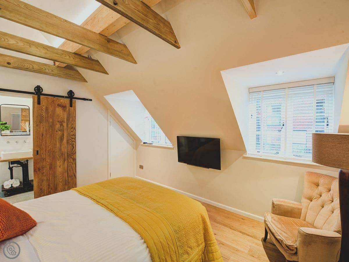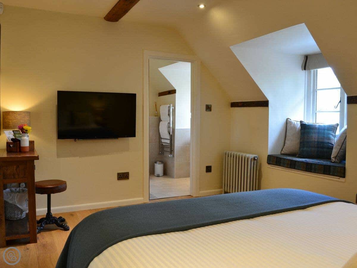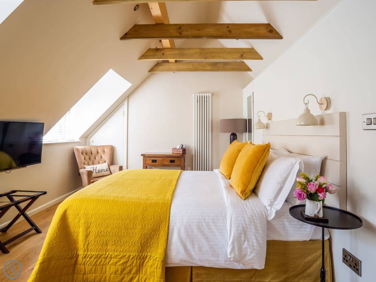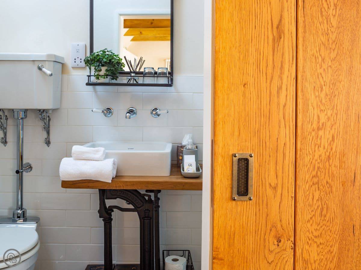 The cottage is for two people. There are two bedrooms and each one has its own bathroom. It has a 5 Star rating, which means it's well-finished. The ground floor is wheelchair accessible, though the cottage itself isn't fully adapted. The stairs inside are narrow, like most old cottages.