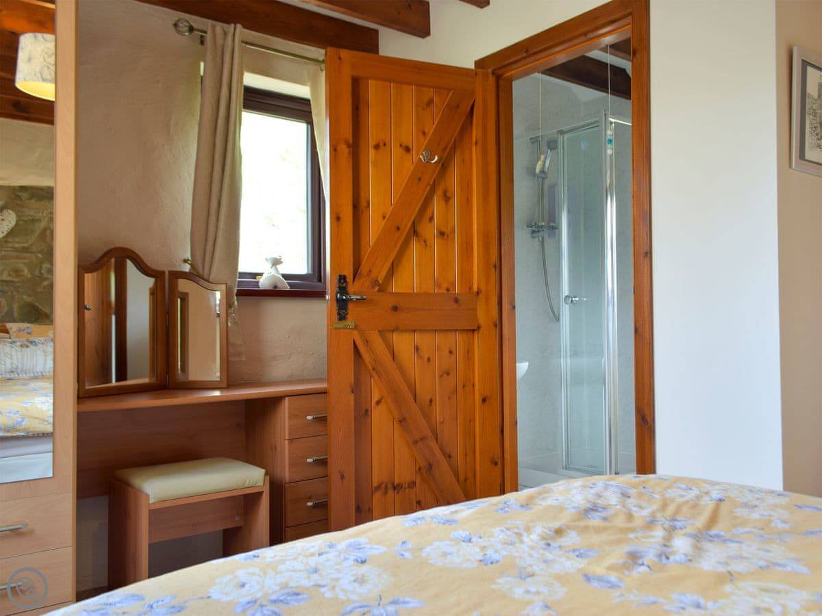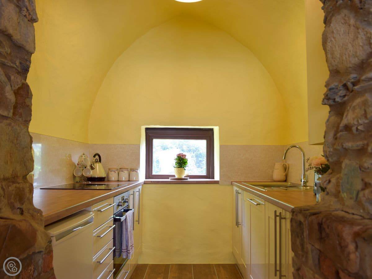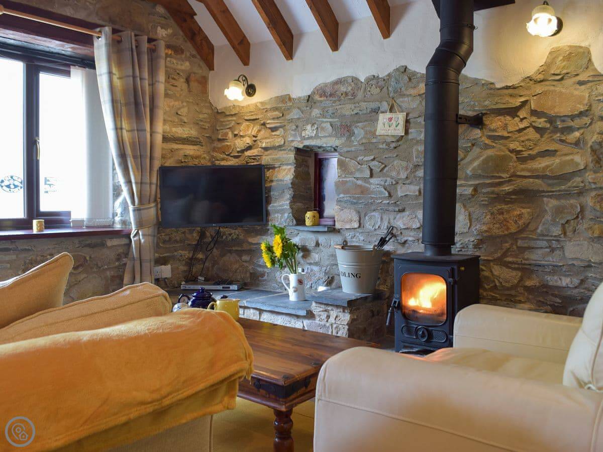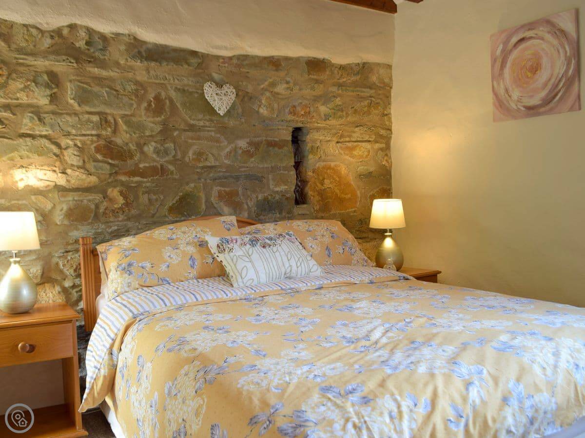 It's a one bedroom cottage, sleeps two. It's got a 4 Star rating. You'll find stone walls, flagged floors, beams, and a wood burner. The stairs are quite steep, just to be aware. It's got an enclosed garden with a patio and a barbecue.