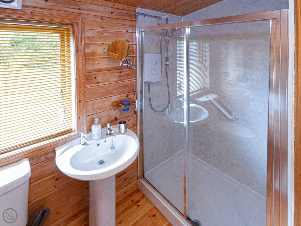 It sleeps four. Two bedrooms, one is a double and one has twin beds. There's one shower room. It's got a 4 Star rating. Everything's on the ground floor and the doors are wide, so it works if you have mobility issues. There's a ramp at the front.