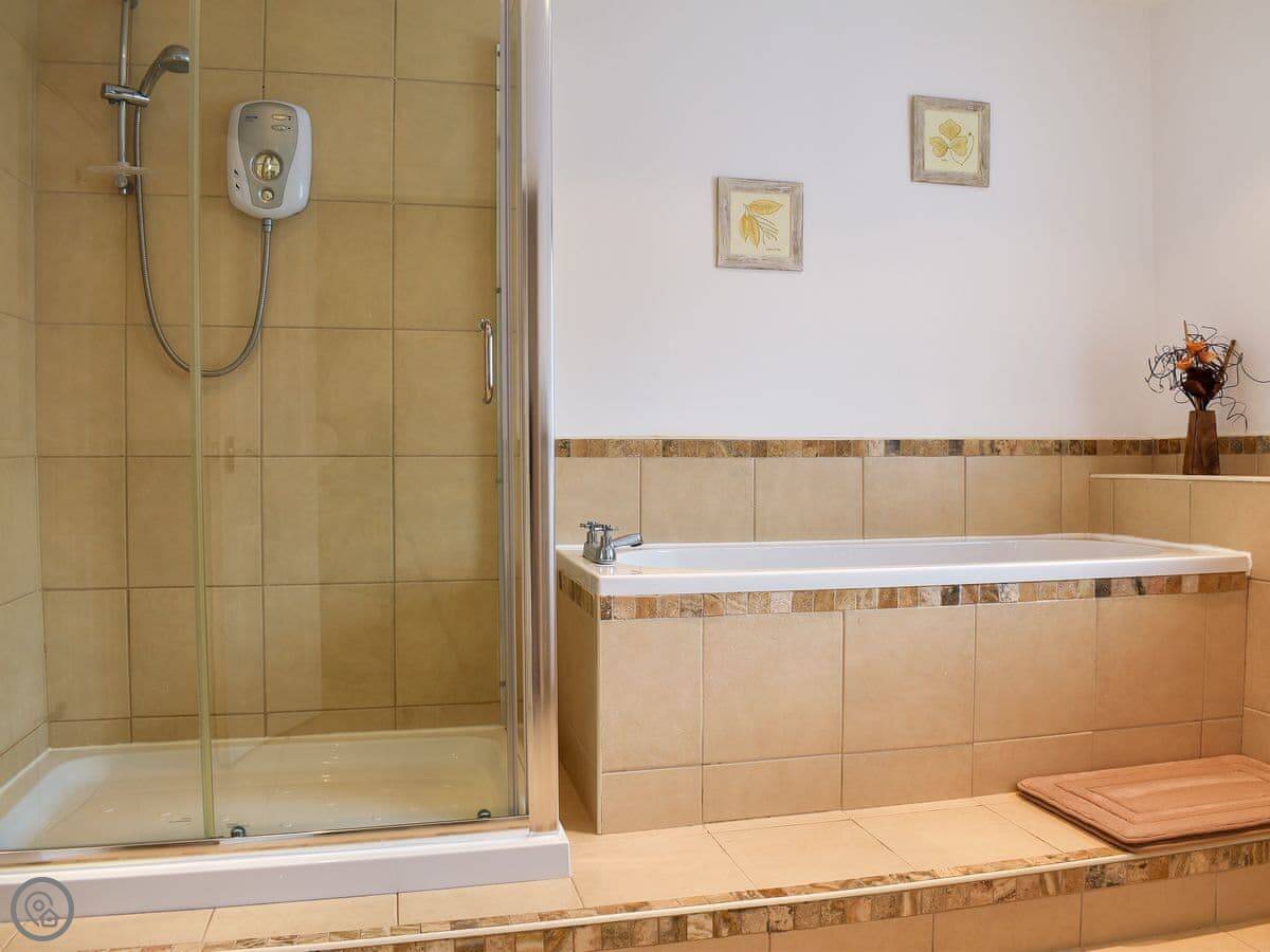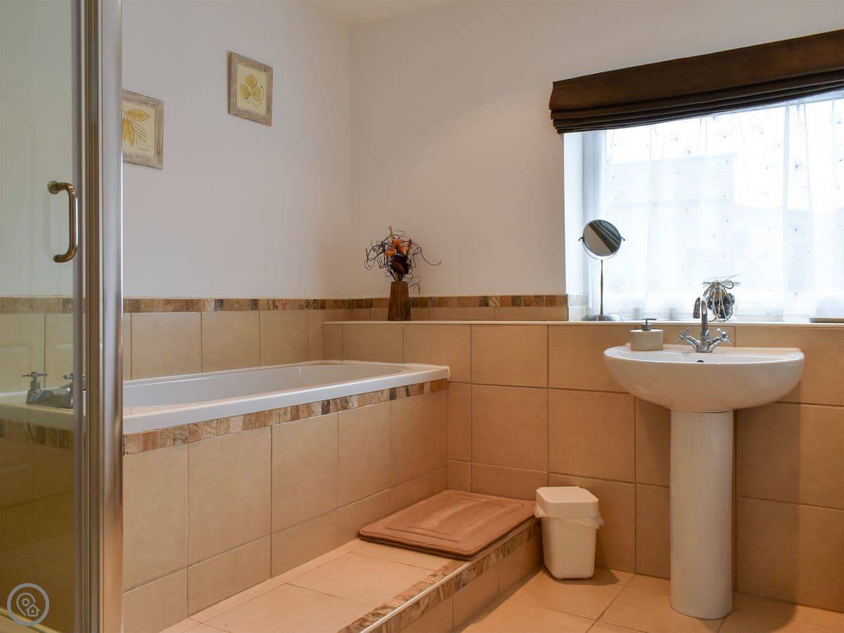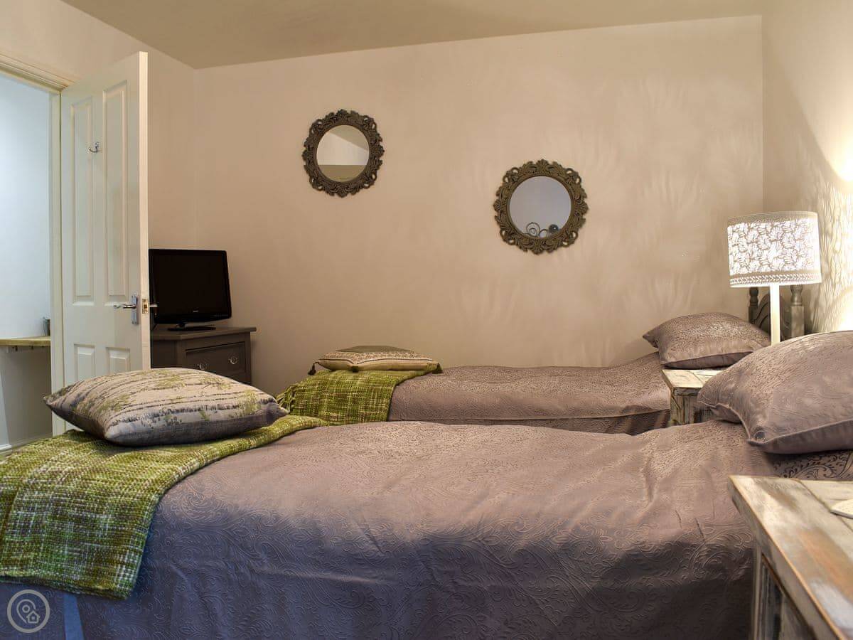 It sleeps six, in three bedrooms. They're all downstairs. Two bedrooms have their own ensuite showers, and there's a family bathroom as well. That bit works well if you've got a few people.