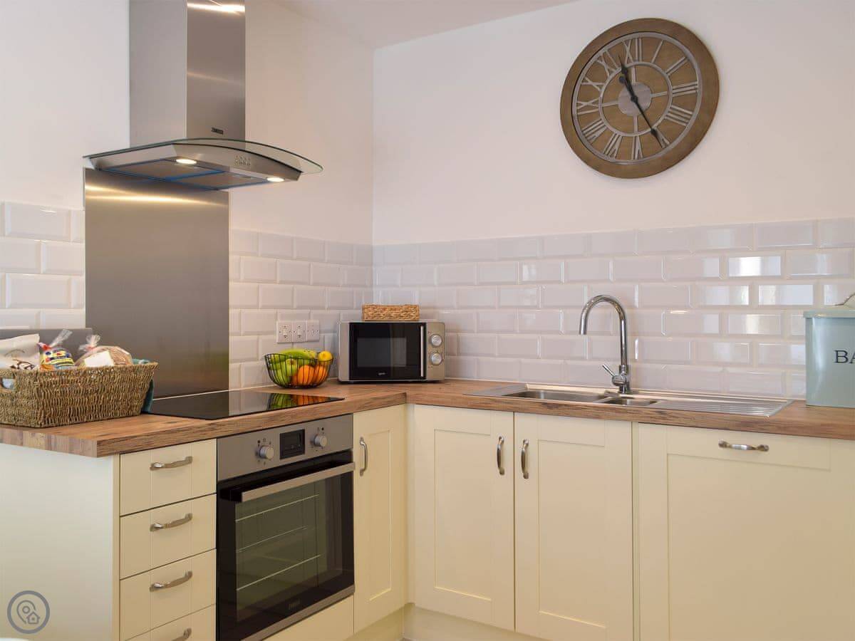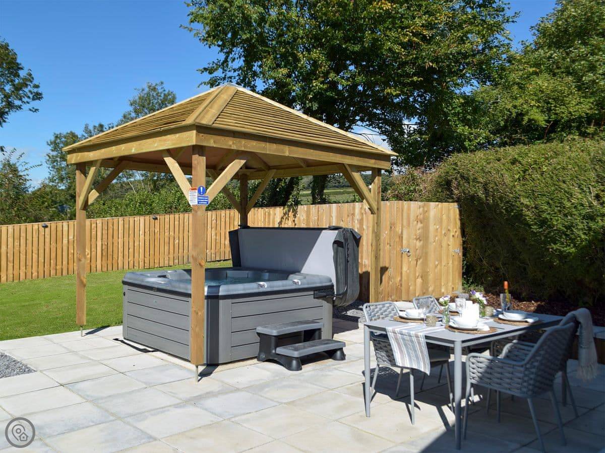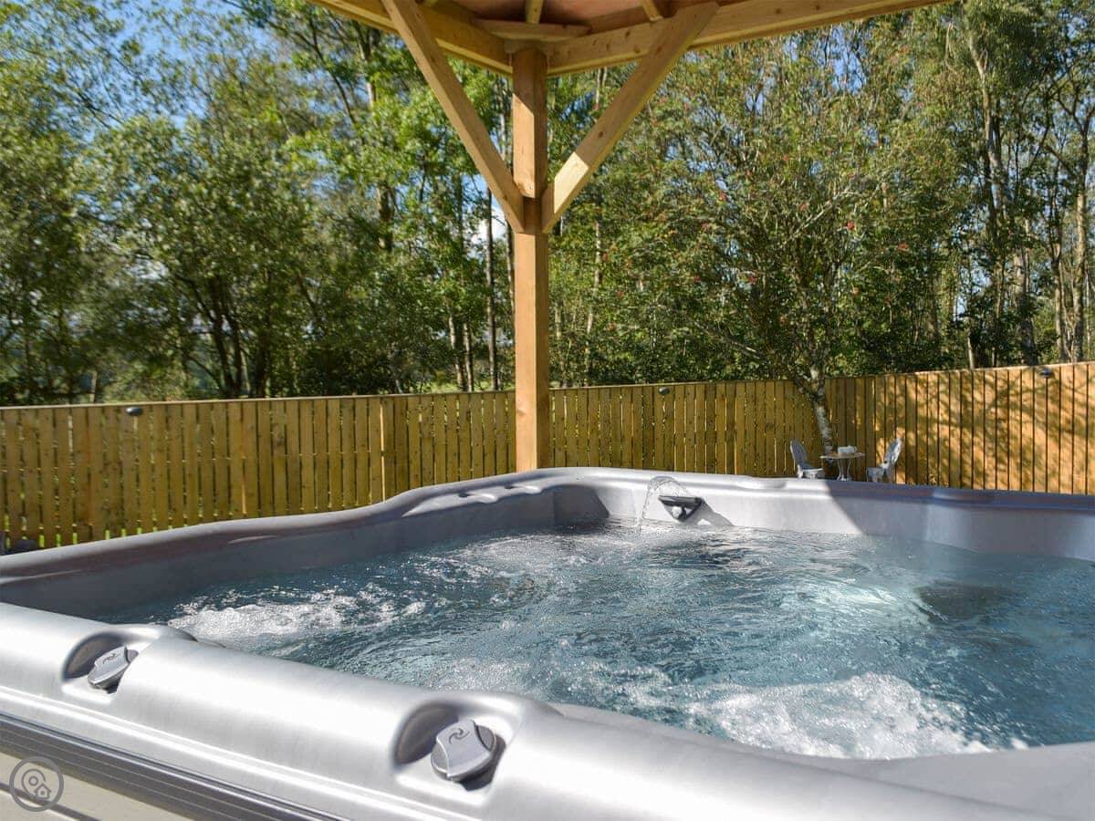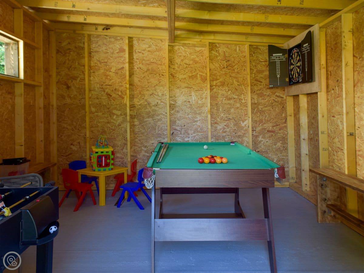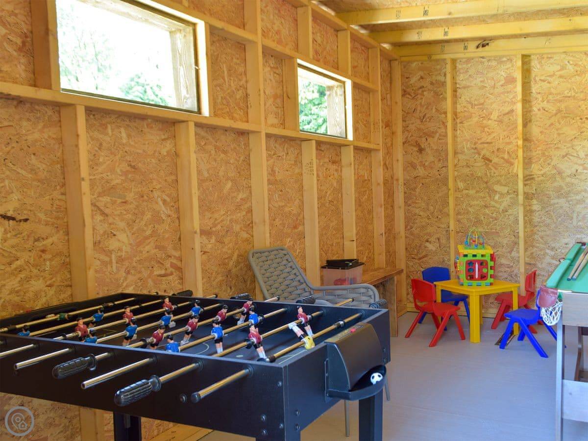 You have a private, enclosed patio with a barbecue and a hot tub. There’s also a games room. Inside, there’s a wood burner in the living area.