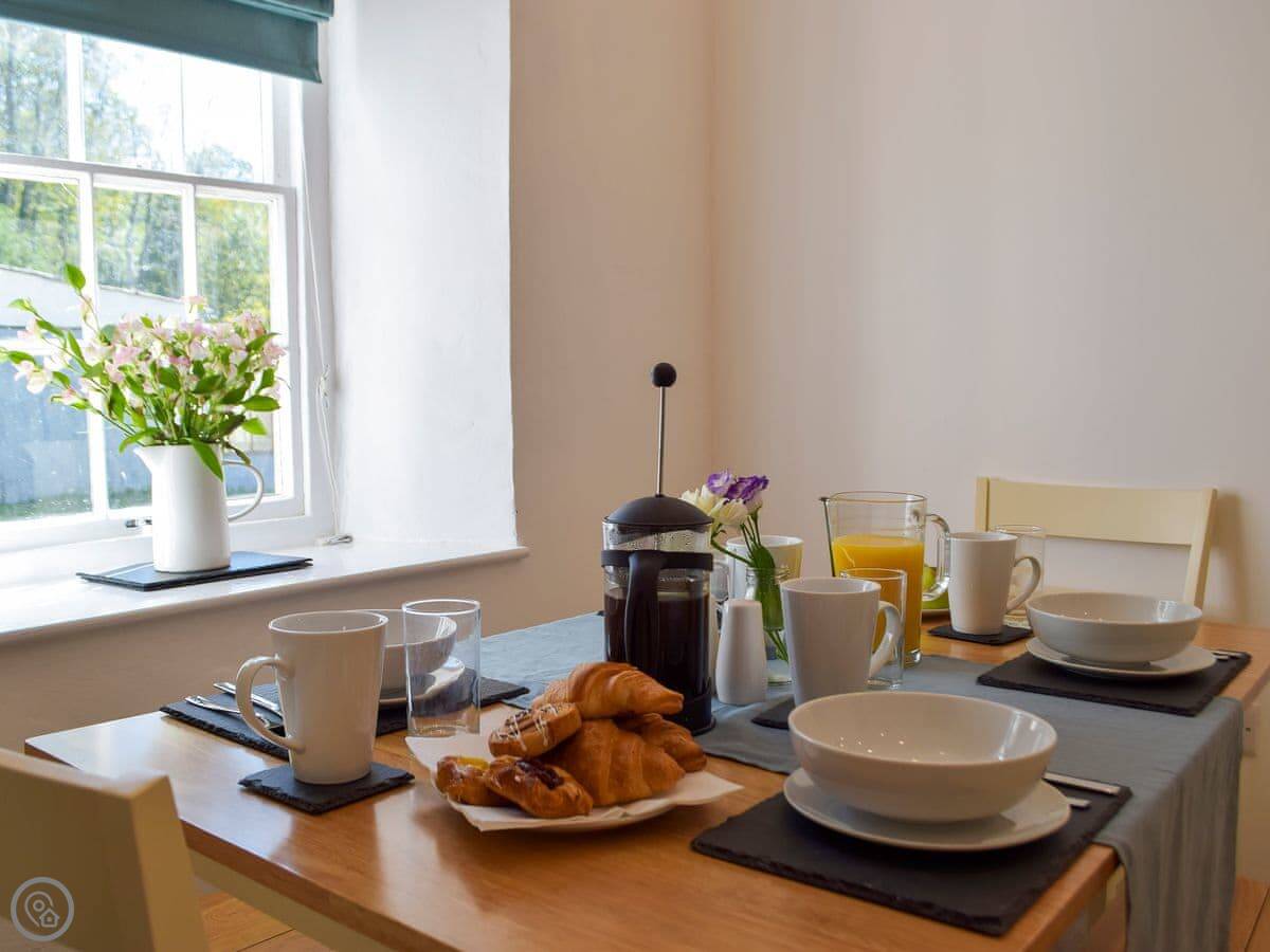 Facilities are all there: parking, wifi, washing machine, dishwasher, cot and highchair if needed. Bedding and towels are included. No pets, sorry.
