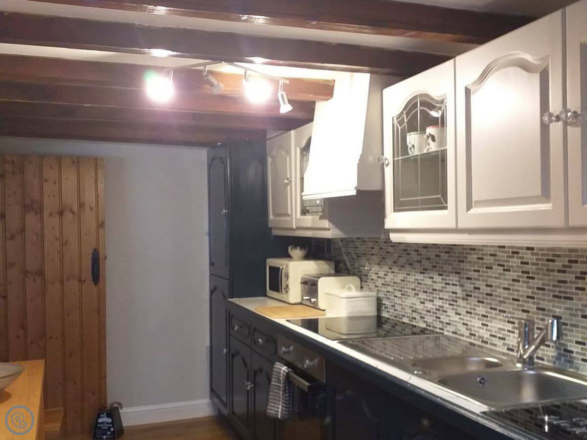 The cottage sleeps three. Two bedrooms and one bathroom. It's got a 4 Star rating. It's been done up nicely inside. There's a wood burner in the living room. The ceilings are low in places, so mind your head.
