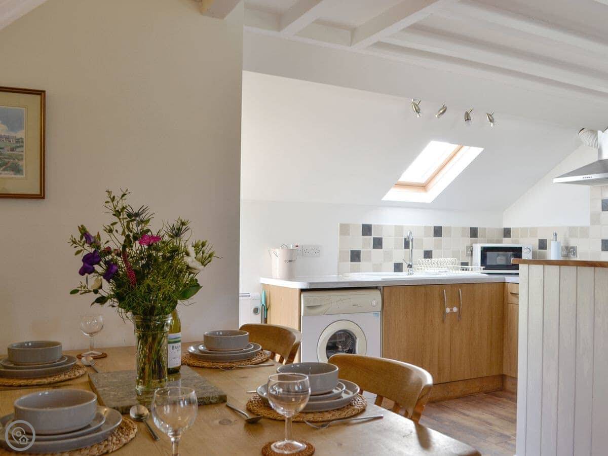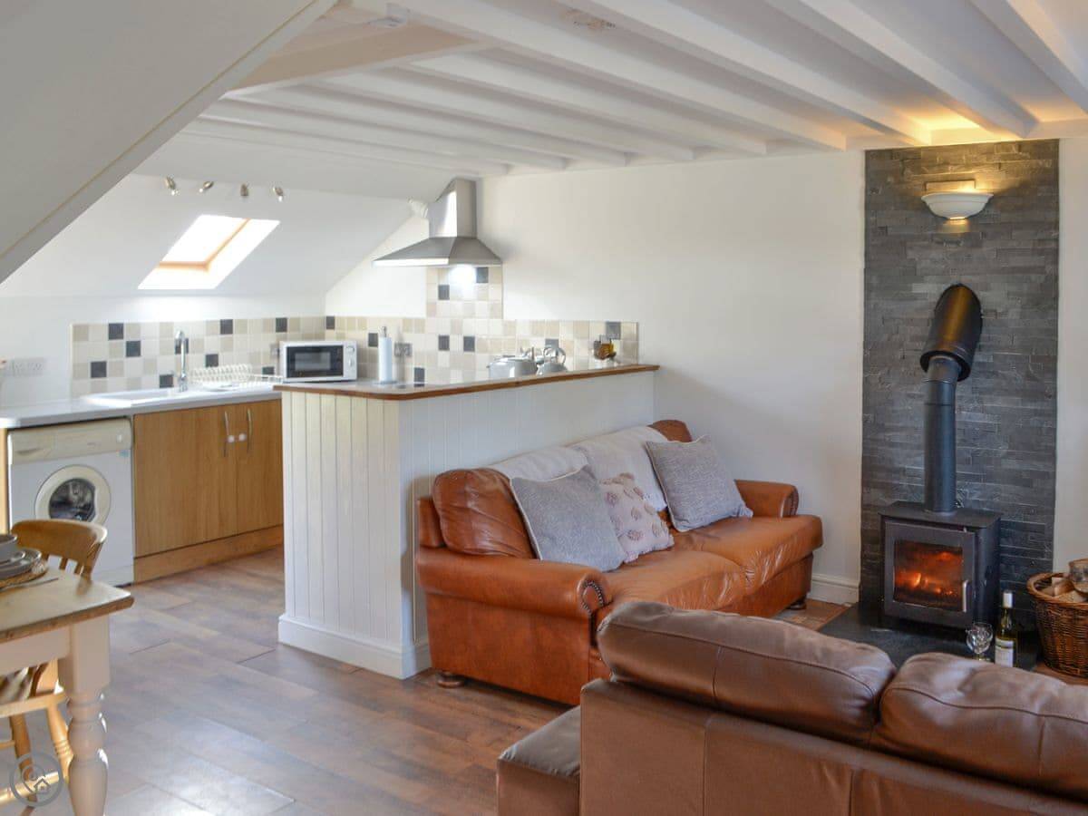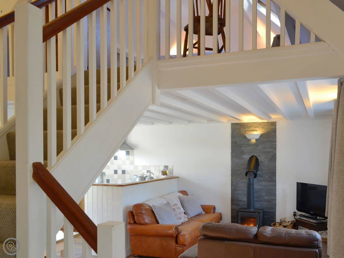 This beautiful semi-detached cottage is ideally located to explore the iconic Lleyn Peninsula, as well as the neighbouring Snowdonia National Park. This is the perfect rural retreat for families, couples and friends whether you choose a relaxing or leisurely break, you won’t be disappointed. On arrival, you will be greeted with a traditional stone faced cottage set within a backdrop of rural countryside and only 2 miles away from the glistening coast. A spacious open plan living area consisting of a well equipped kitchen, dining area and living room, featuring a blazing wood burner, perfect for those cosy nights in. Sgubor Geirch benefits from having a twin bedroom on the ground floor as well as cosy double bedroom set amidst the vaulted ceiling on a quirky mezzanine floor, overlooking the living area. Outside, you’ll find a lawned garden with patio area where you can enjoy al fresco dining on a sunny day, or enjoy outdoor games with friends and family.