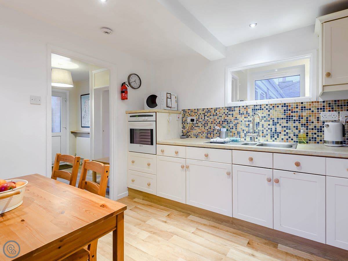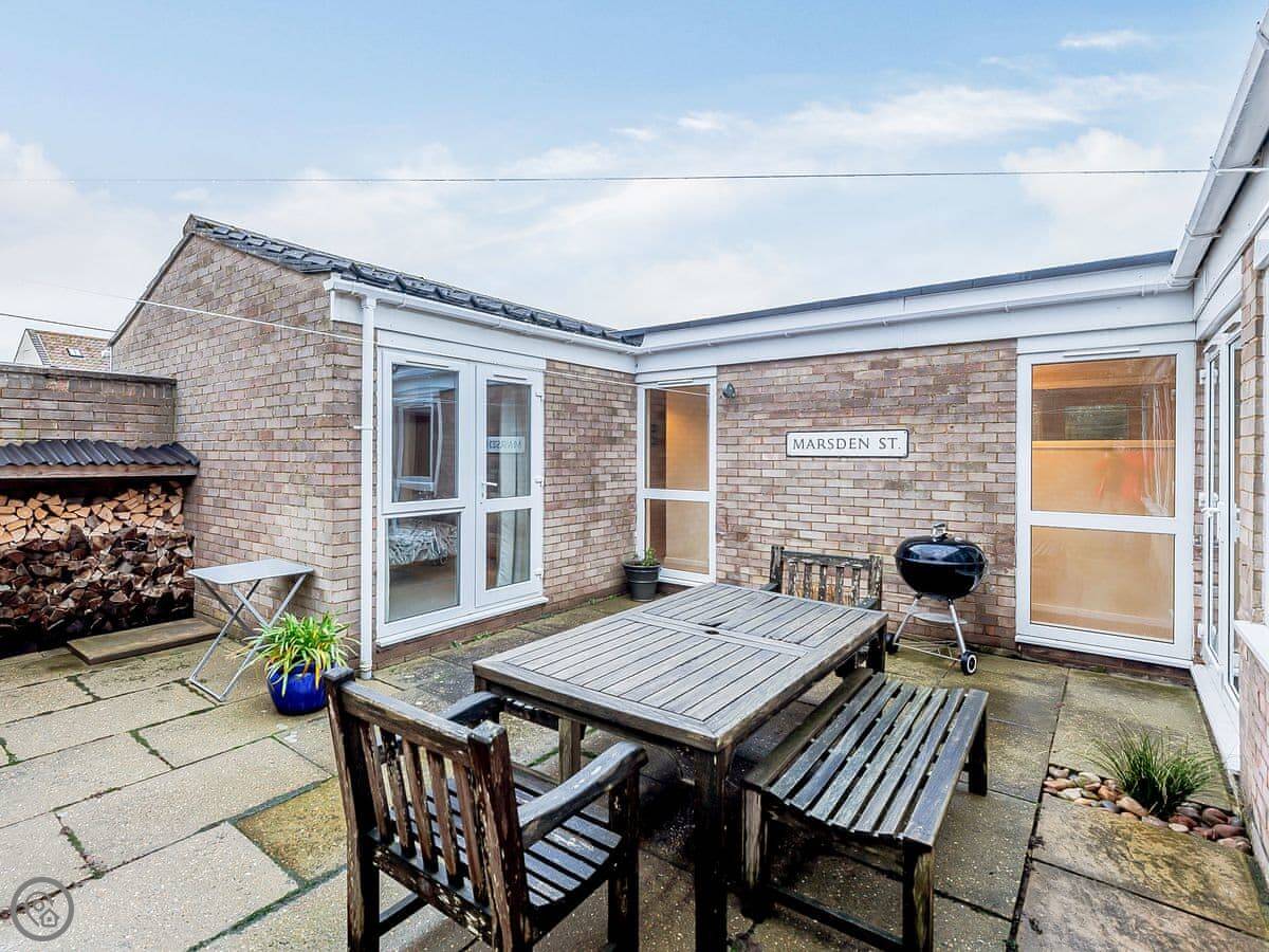 The back garden is enclosed. There's a patio and a wood burner for cooler evenings.