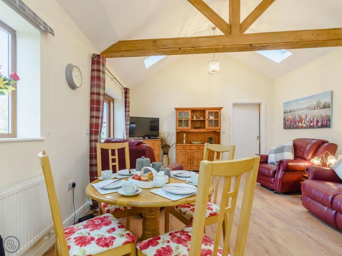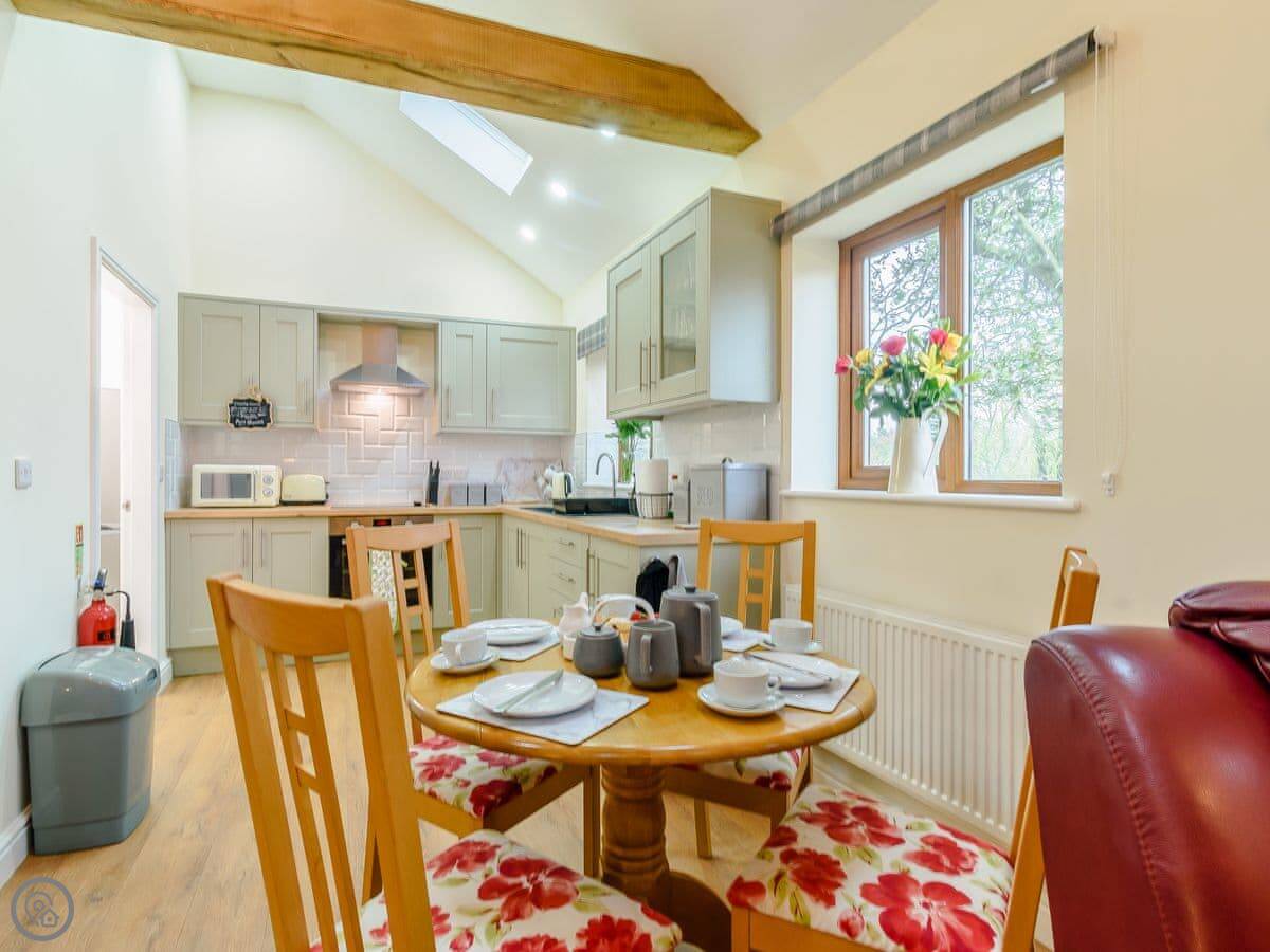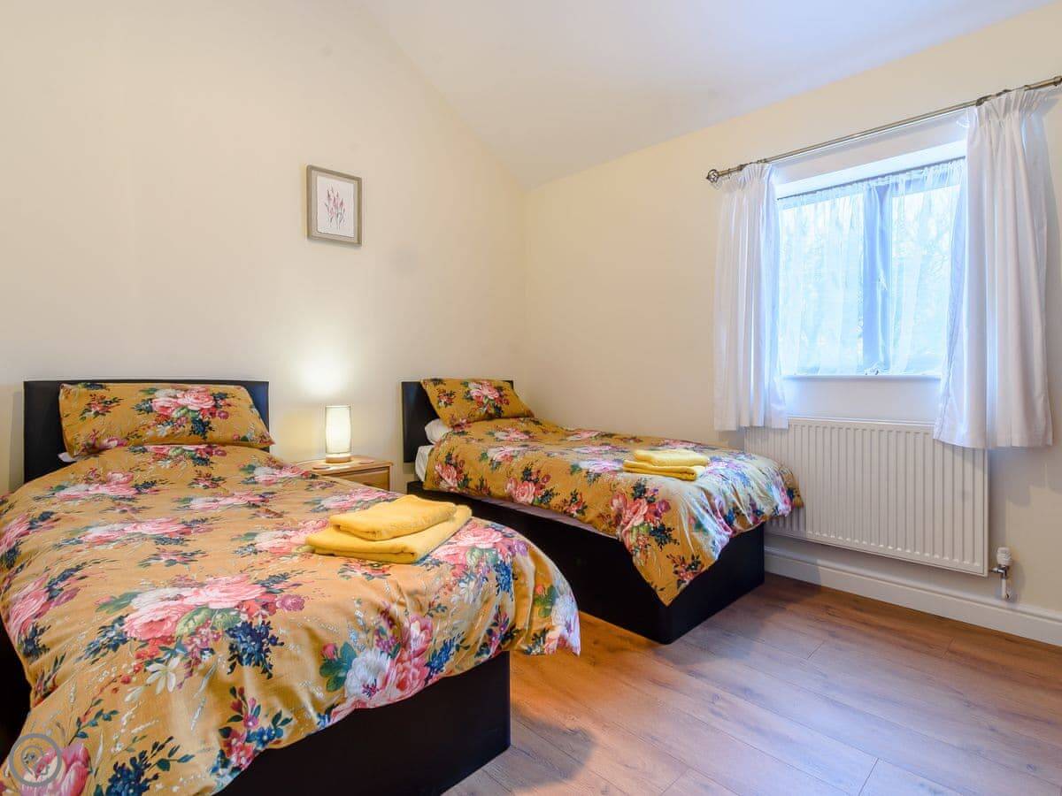 The cottage is one of several set around a shared glass atrium. It’s modern, fully accessible, and gets a 5 Star rating. It sleeps four, with two bedrooms and one bathroom which is a wet room. Everything is on the ground floor.