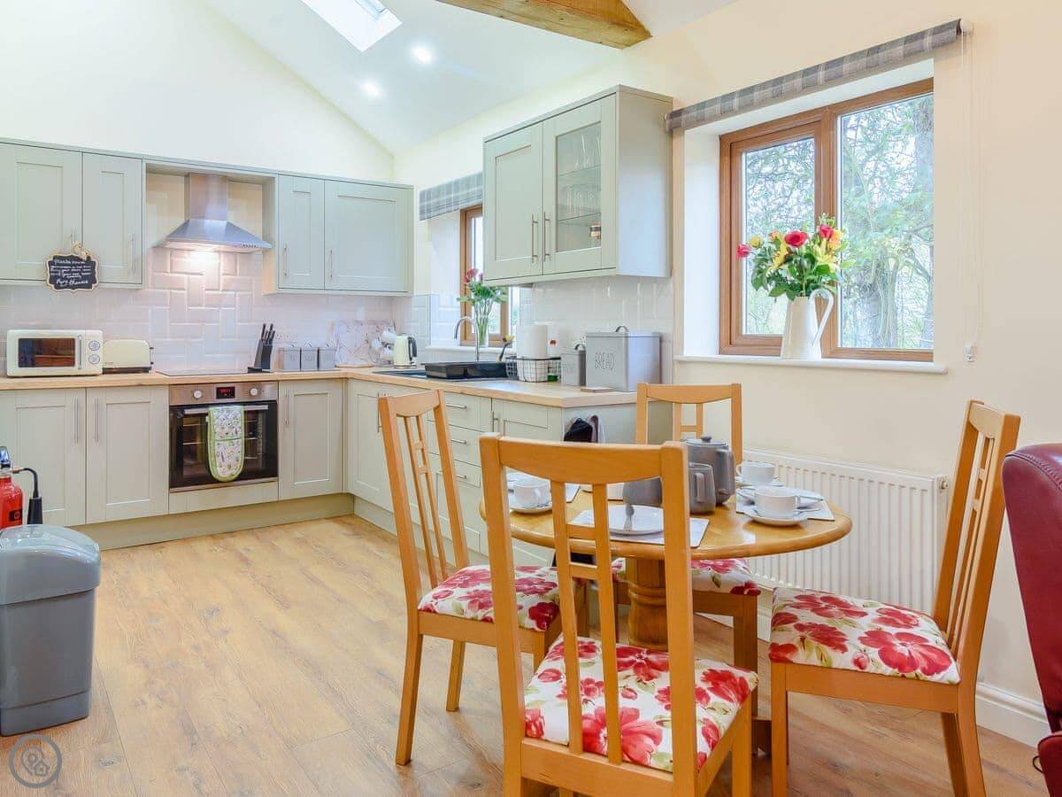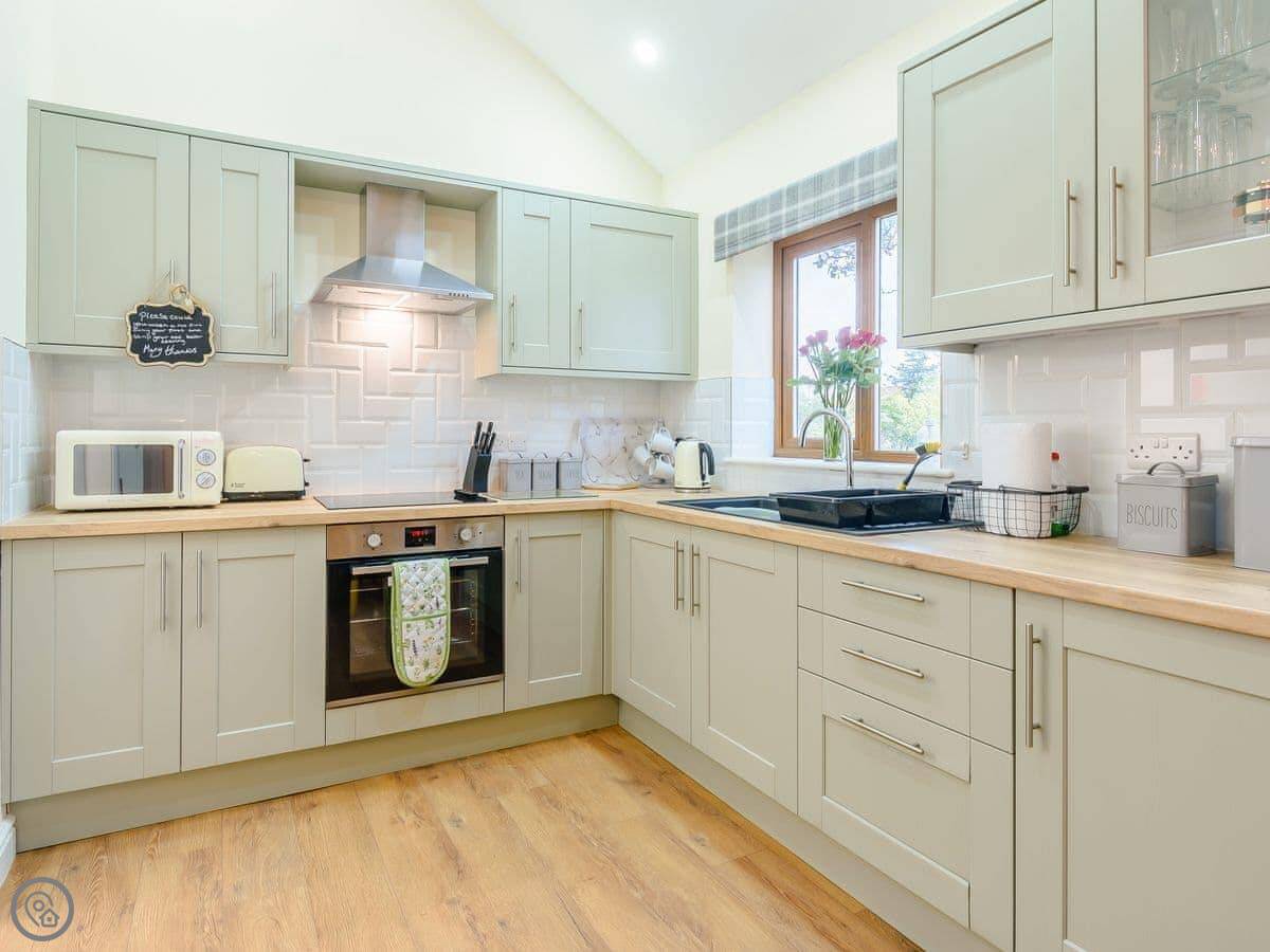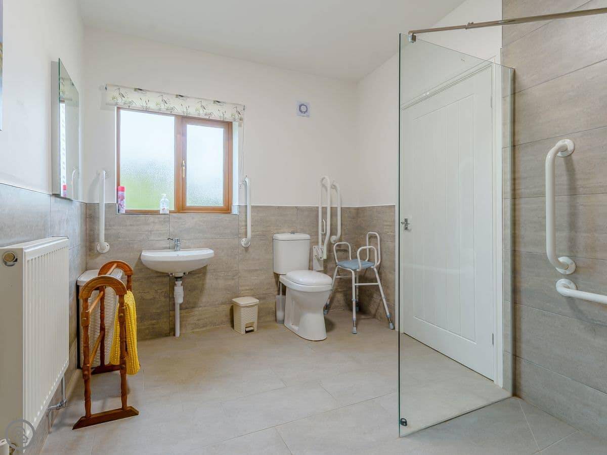 The cottage is one of several set around a shared glass atrium. It’s modern, fully accessible, and gets a 5 Star rating. It sleeps four, with two bedrooms and one bathroom which is a wet room. Everything is on the ground floor.