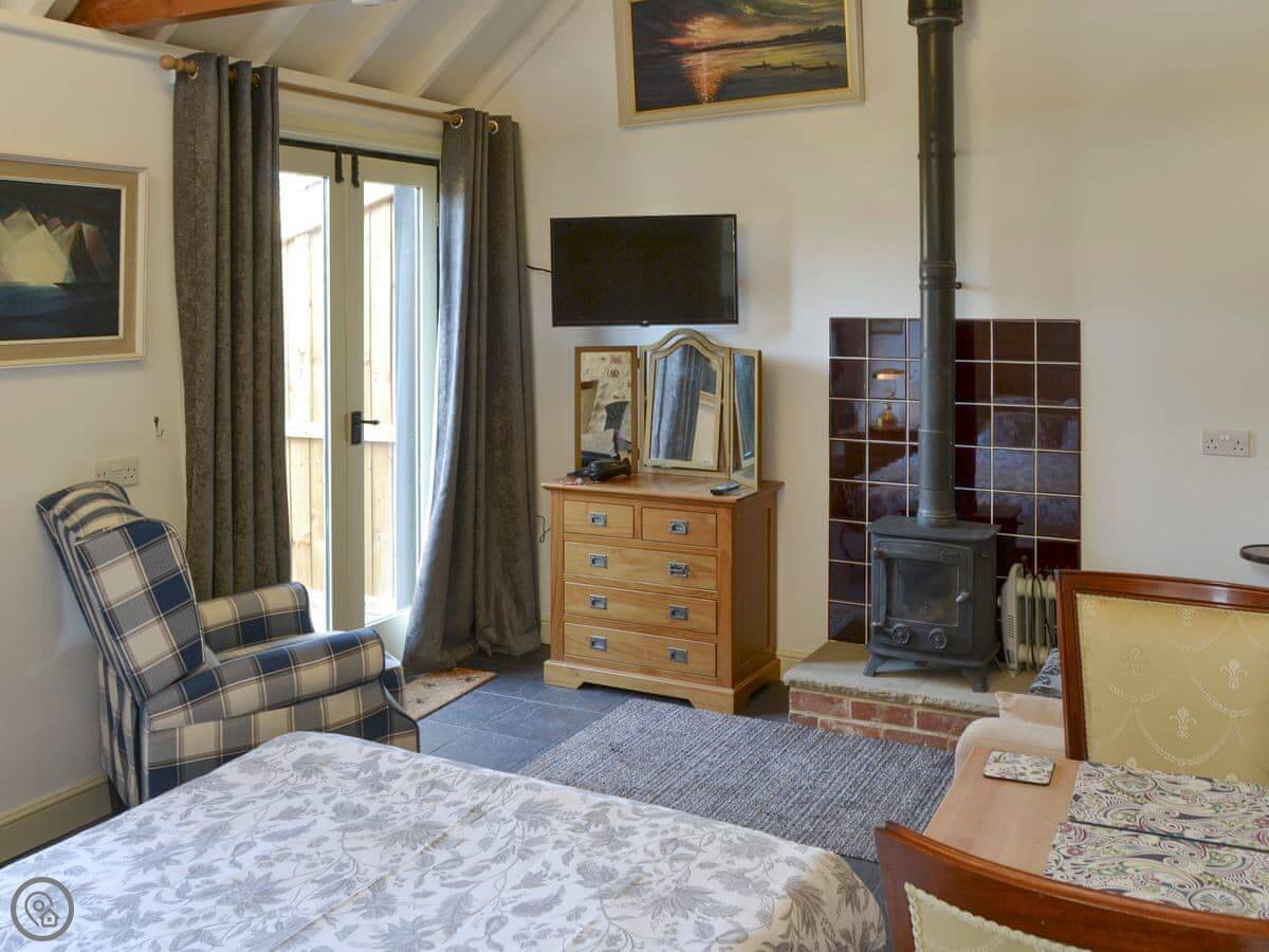 The place is open plan inside. There's a woodburning stove for cooler evenings. They provide the bedding and towels, and they’ll even lend you some beach towels if you ask. There's WiFi and a TV. Parking is right outside.