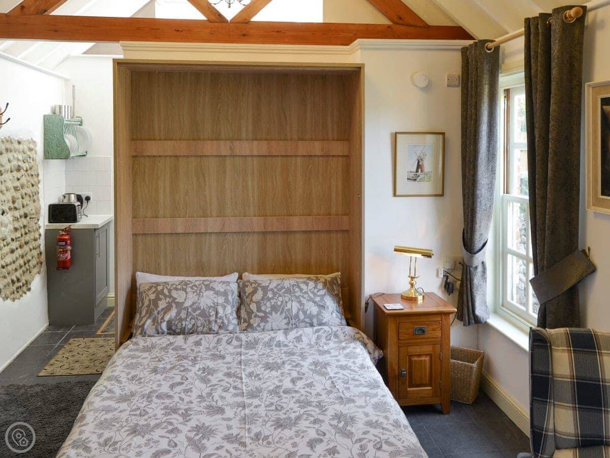 It sleeps two. One bedroom, one bathroom. It's got a 4 Star rating. Everything is on the ground floor, which makes it straightforward. The doorways are suitable for a wheelchair.