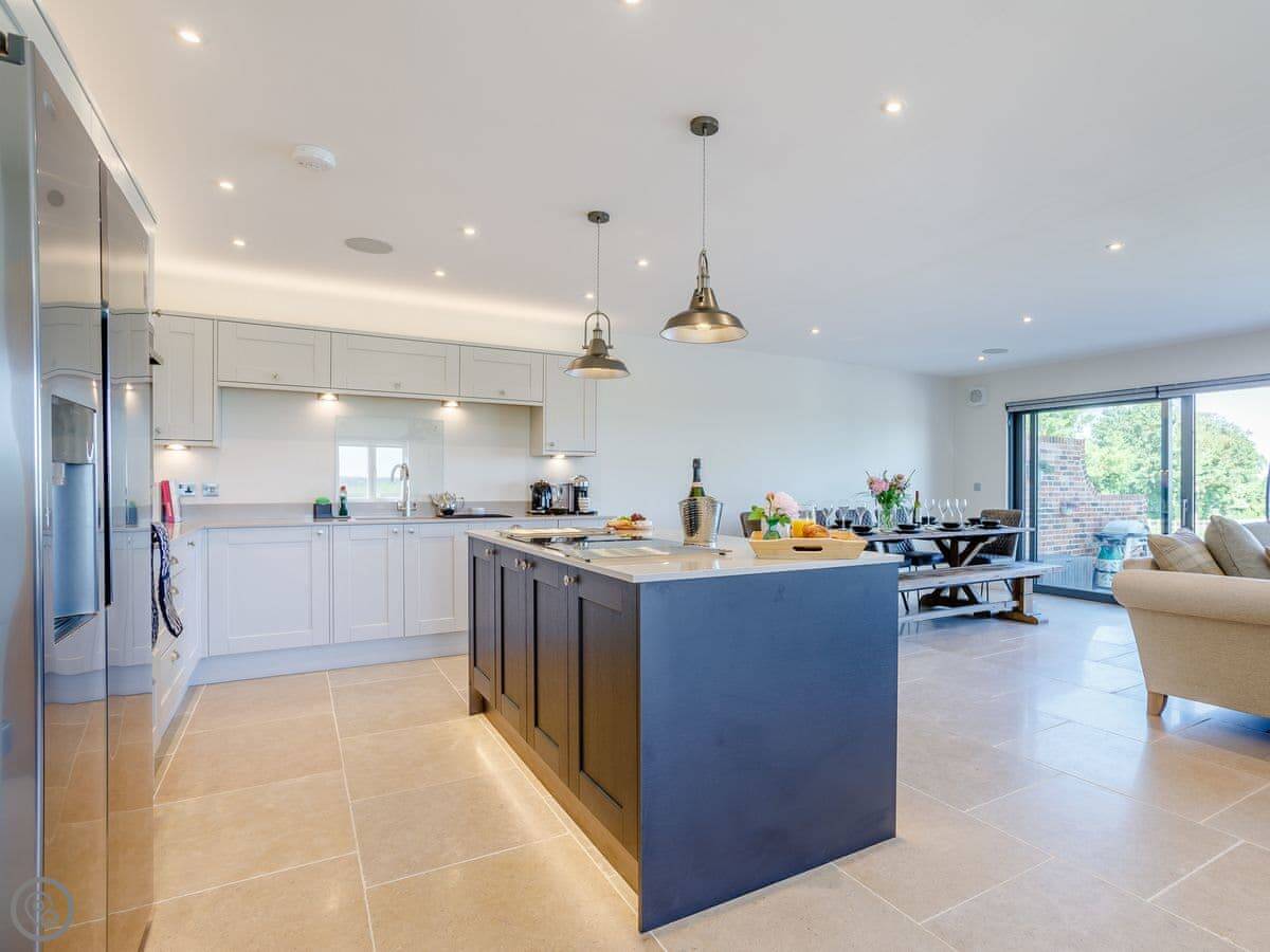Converted in 2020, this pair of stunning luxury barn conversions nestle on the edge of the owners arable farm, in the village of Ashdon. Benefitting from beautiful countryside views, The Dutch Barn and The Hayloft both offer spacious open plan living areas, large gardens and hot tubs for all the family to enjoy. Underfloor heating provides a cosy feeling in the cooler months, and there is a bluetooth sound system throughout with speakers in each room. A large patio and enclosed lawned garden give plenty of space for entertaining.