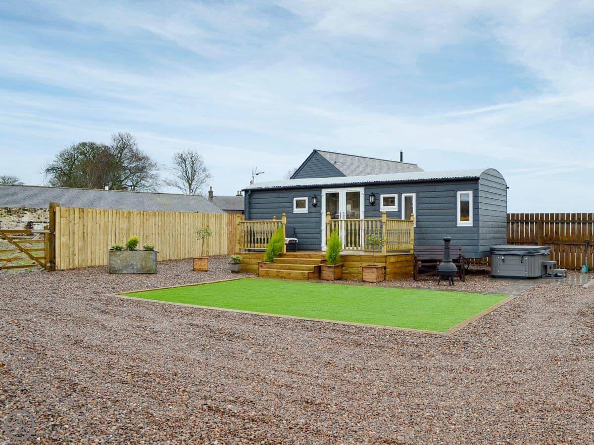 The Shepherd's Hut is in Dun, near Montrose. It's detached and sits in its own bit of space. You're in the countryside here. It's quiet.