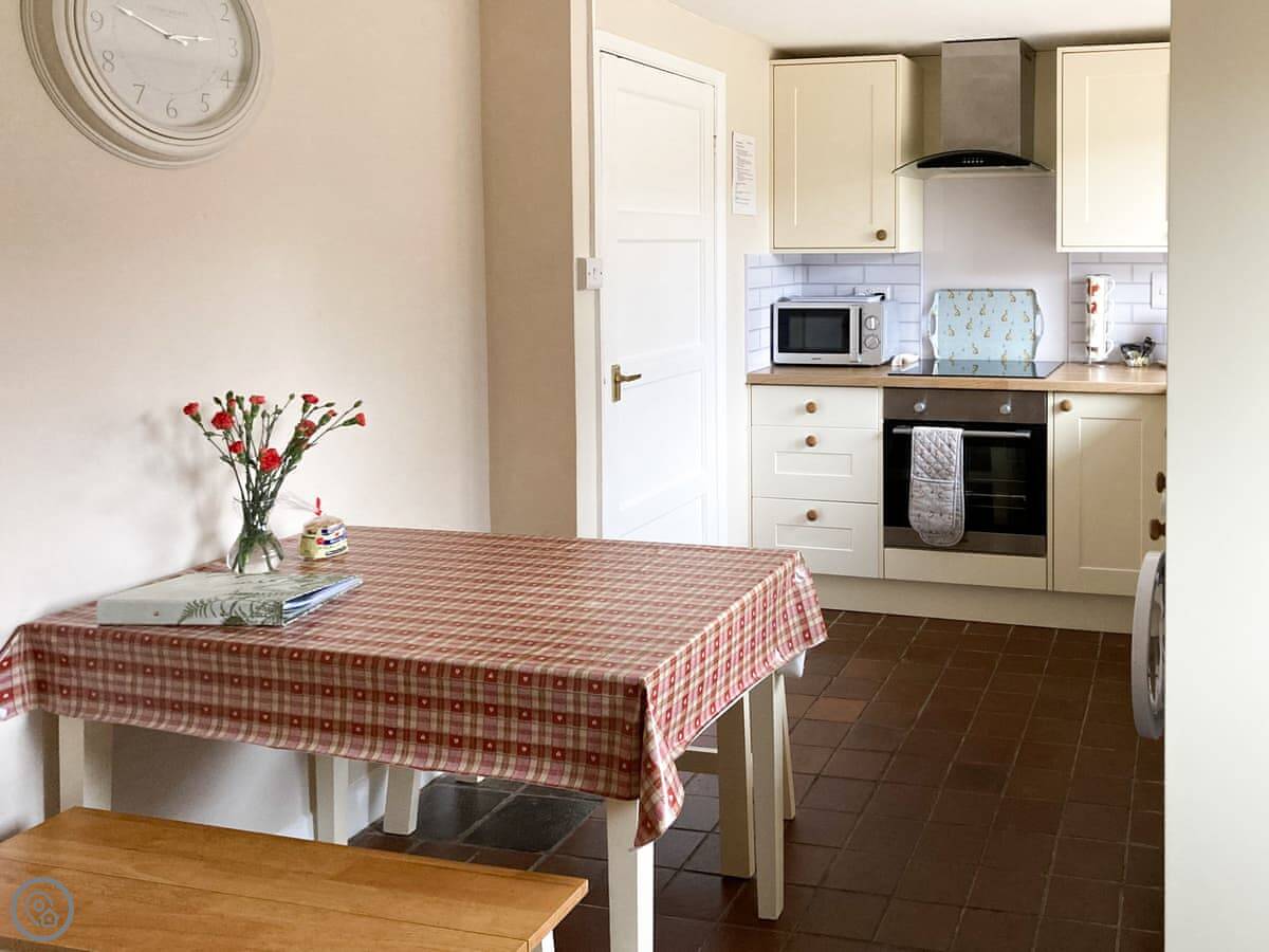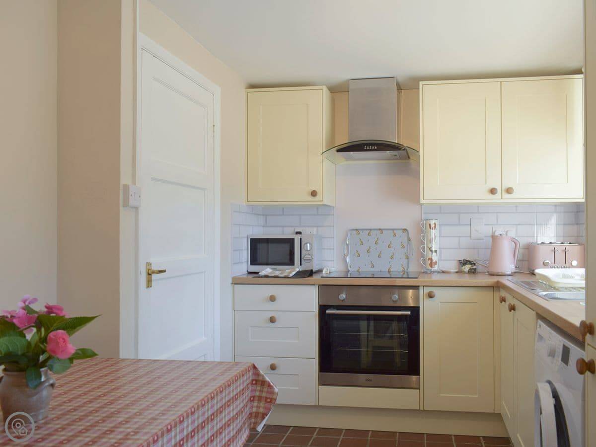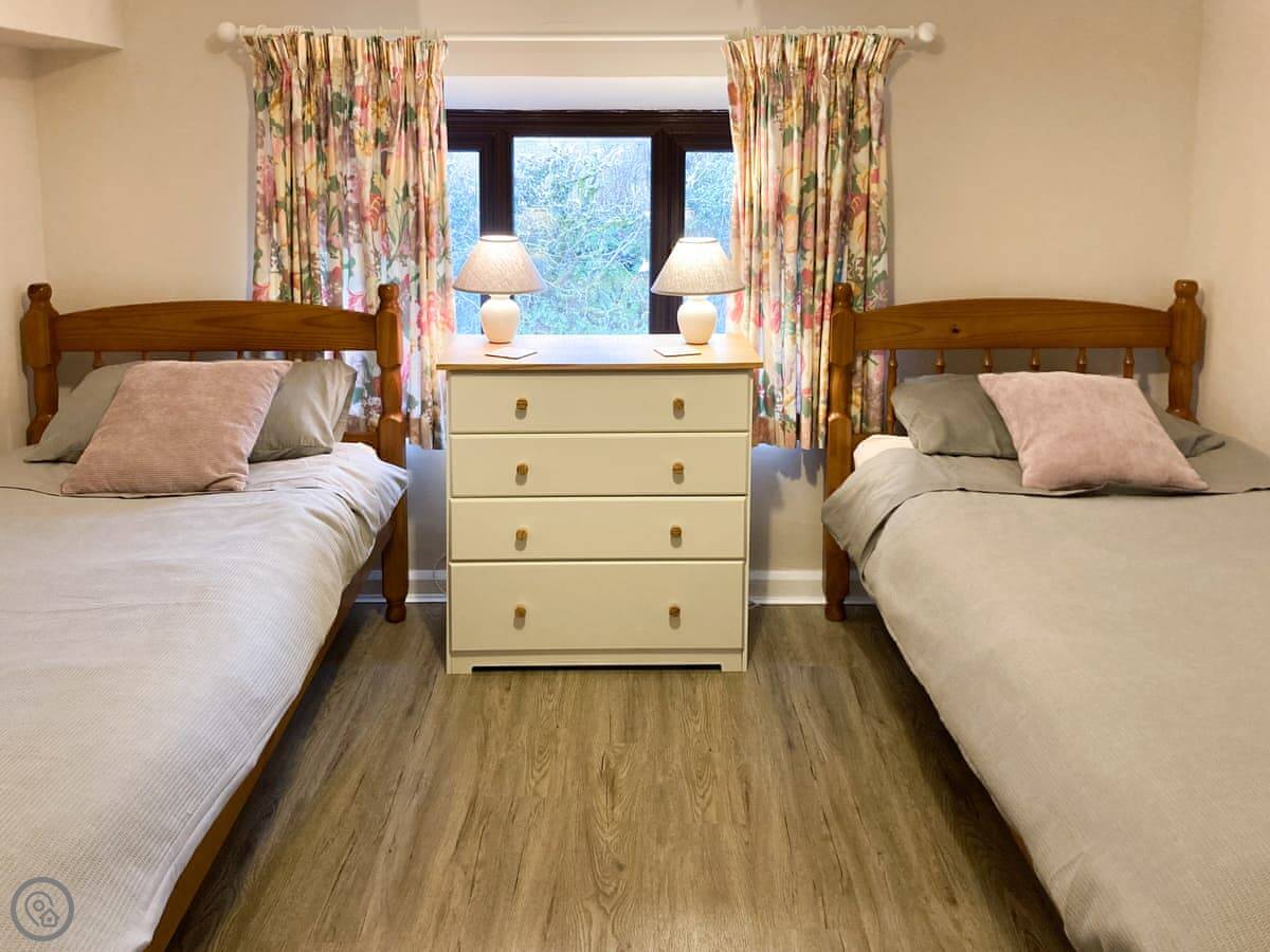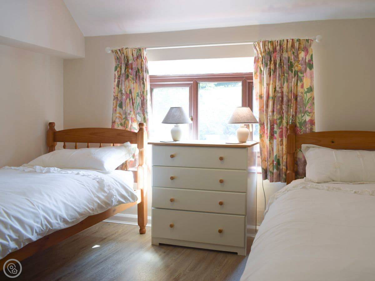 It sleeps four. Two bedrooms upstairs and one bathroom. It's got a 4 Star rating. That means it's comfortable and well-kept. The entrance and the main living area are on the level, which is helpful.