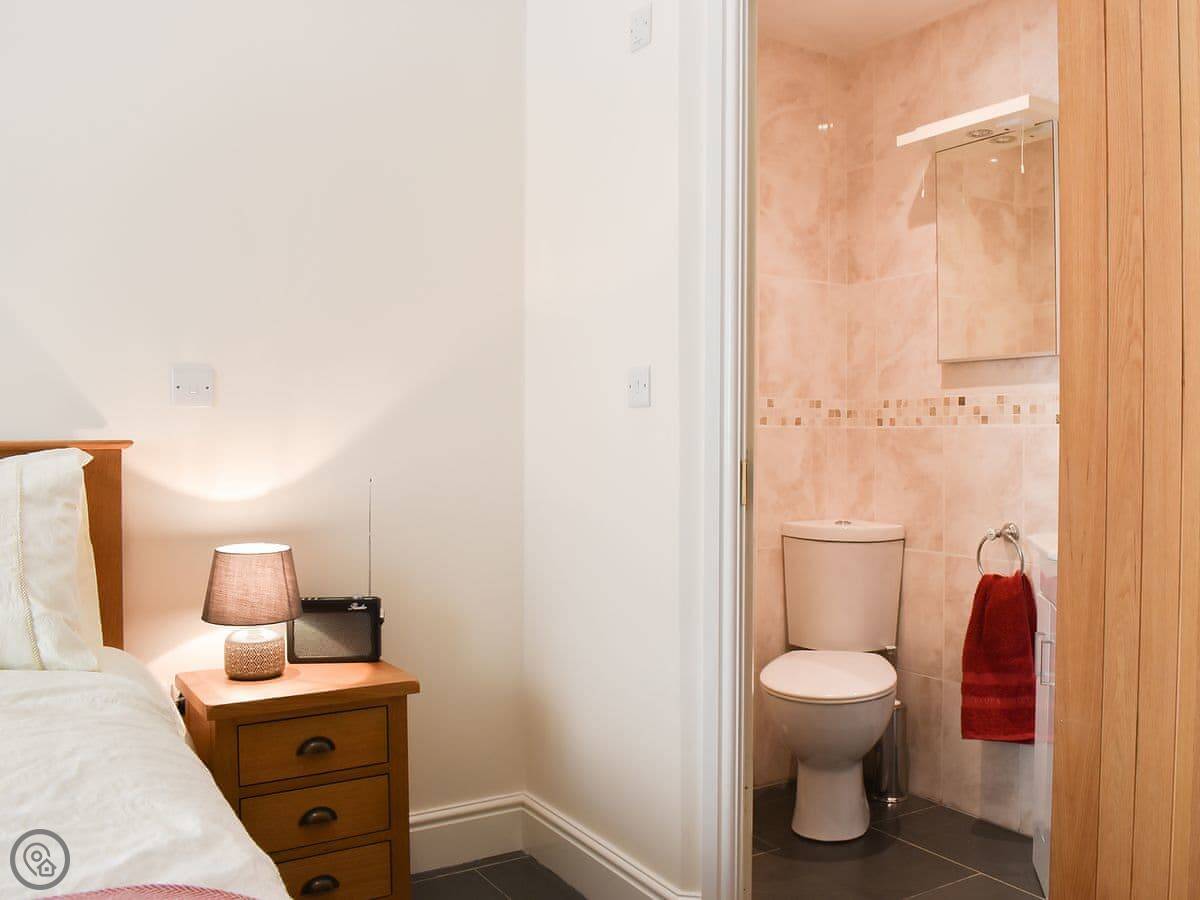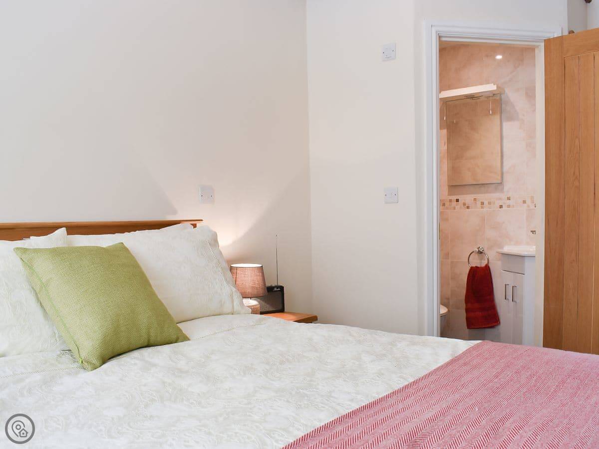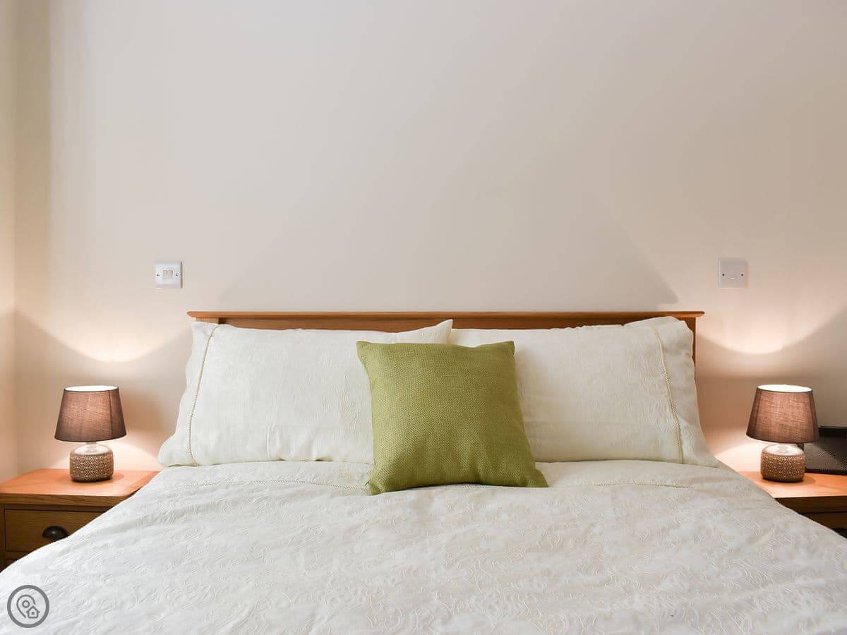 It sleeps four. Two double bedrooms, both with high ceilings. One bathroom with a shower. It’s got a 4 Star rating. Everything’s on the ground floor, which is handy.