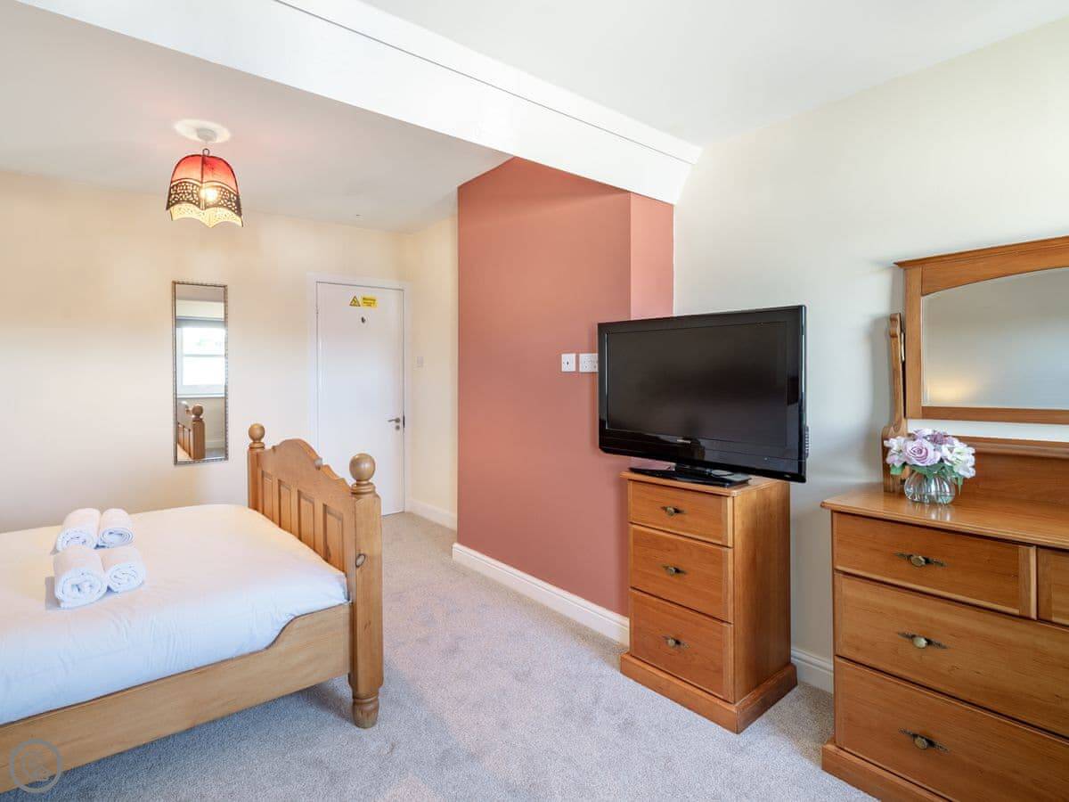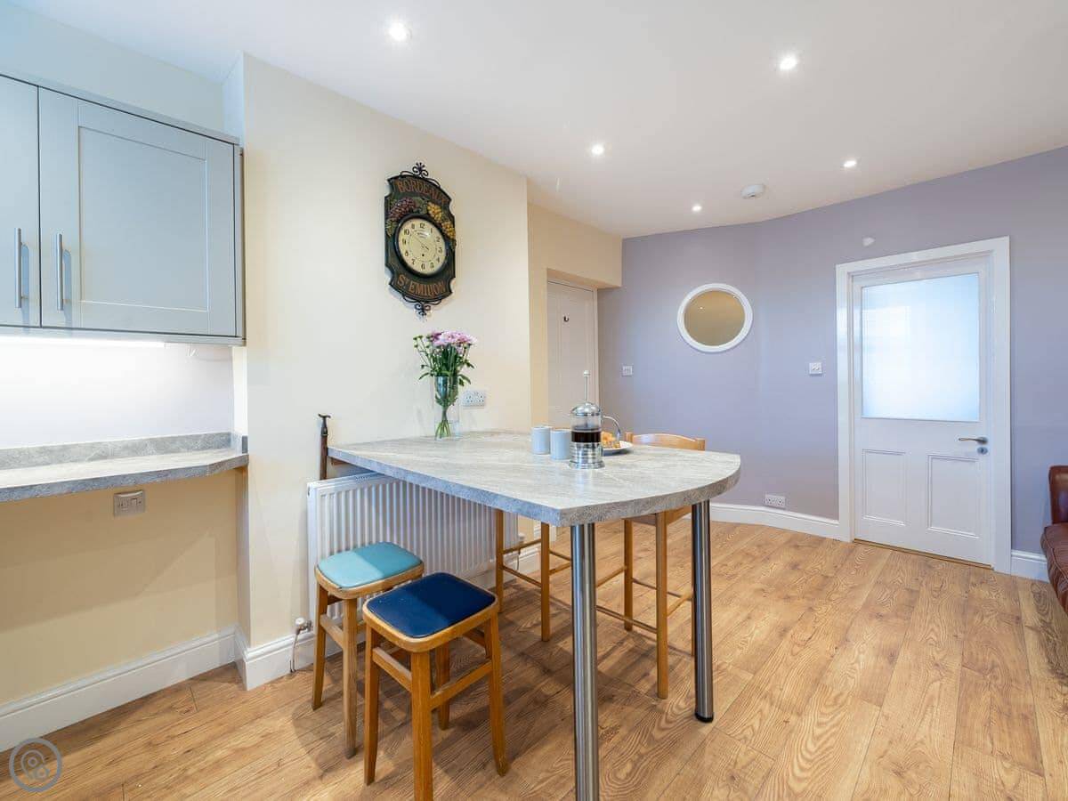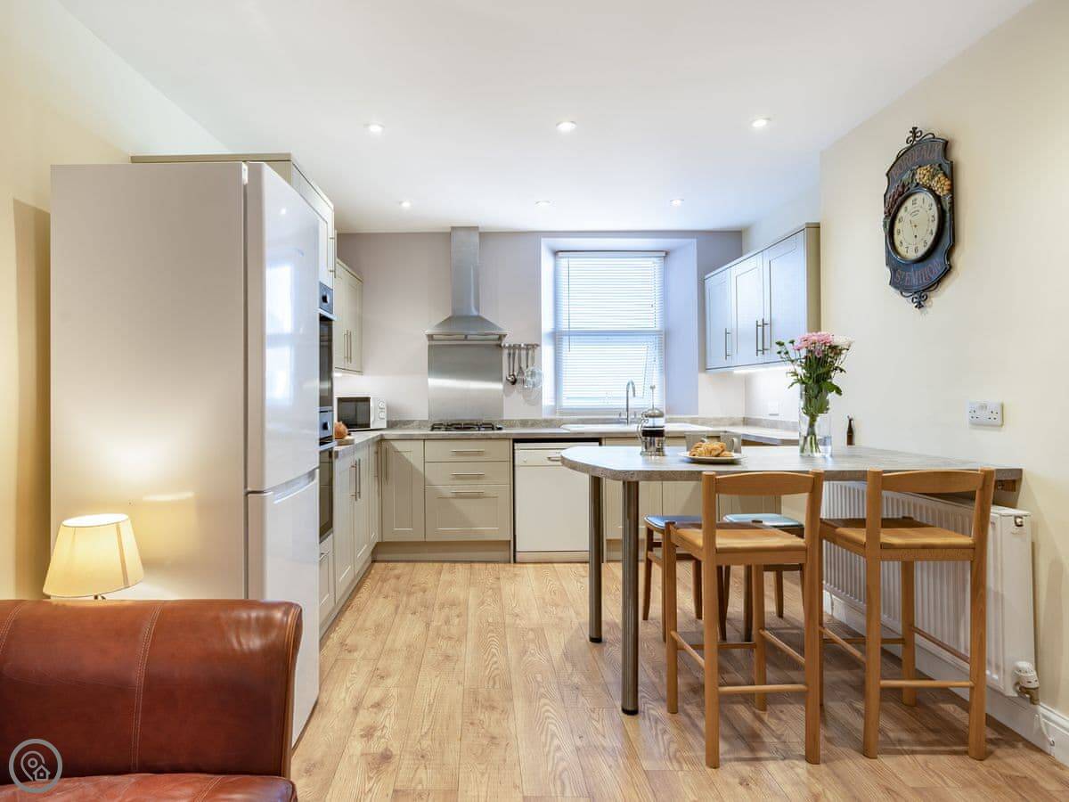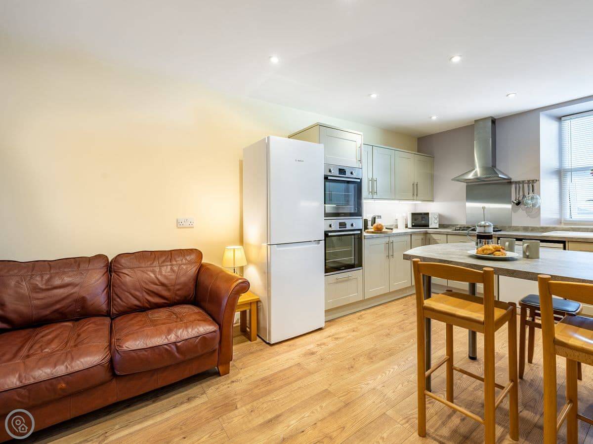 Enter through a very useful drying room, with plenty of room to dry those walking boots, wet coats or store bikes and sports equipment. The warming wood burner here offers the perfect spot for your four legged friend to dry off before heading upstairs with you. The first floor offers plenty of space for everyone to relax. The living room has comfy sofas and a large screen TV for a movie night in, while the well-equipped kitchen has everything you need to cook up a hearty meal served around the large table in the adjacent dining room. With so many choices of restaurants and takeaways close by, you could easily be tempted away from cooking. The property features three double bedrooms and a twin room, each boasting sumptuous beds and bedding offering a good night’s sleep. Begin the day feeling revived and refreshed in either of the two bathrooms on the first or second floor. Outside is a private courtyard seating area, cold water tap and two private parking for 1 small/medium sized car in garage and 1 vehicle behind on hard-standing.