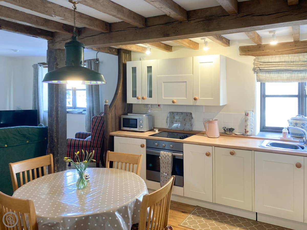 Facilities are all there: washing machine, dishwasher, WiFi. Bedding and towels are included. There's parking right outside. You can bring one dog. We've got a highchair and a stairgate if you need them.