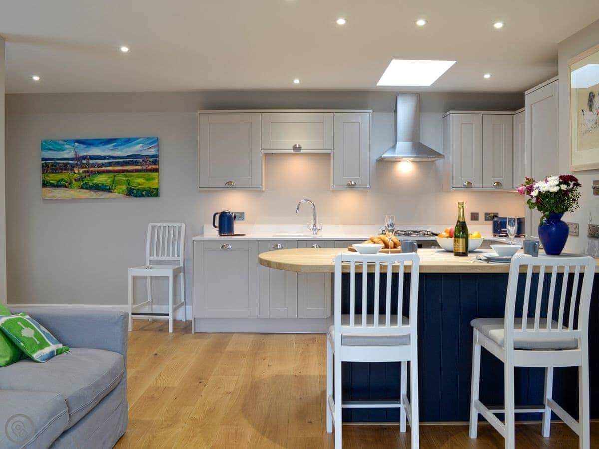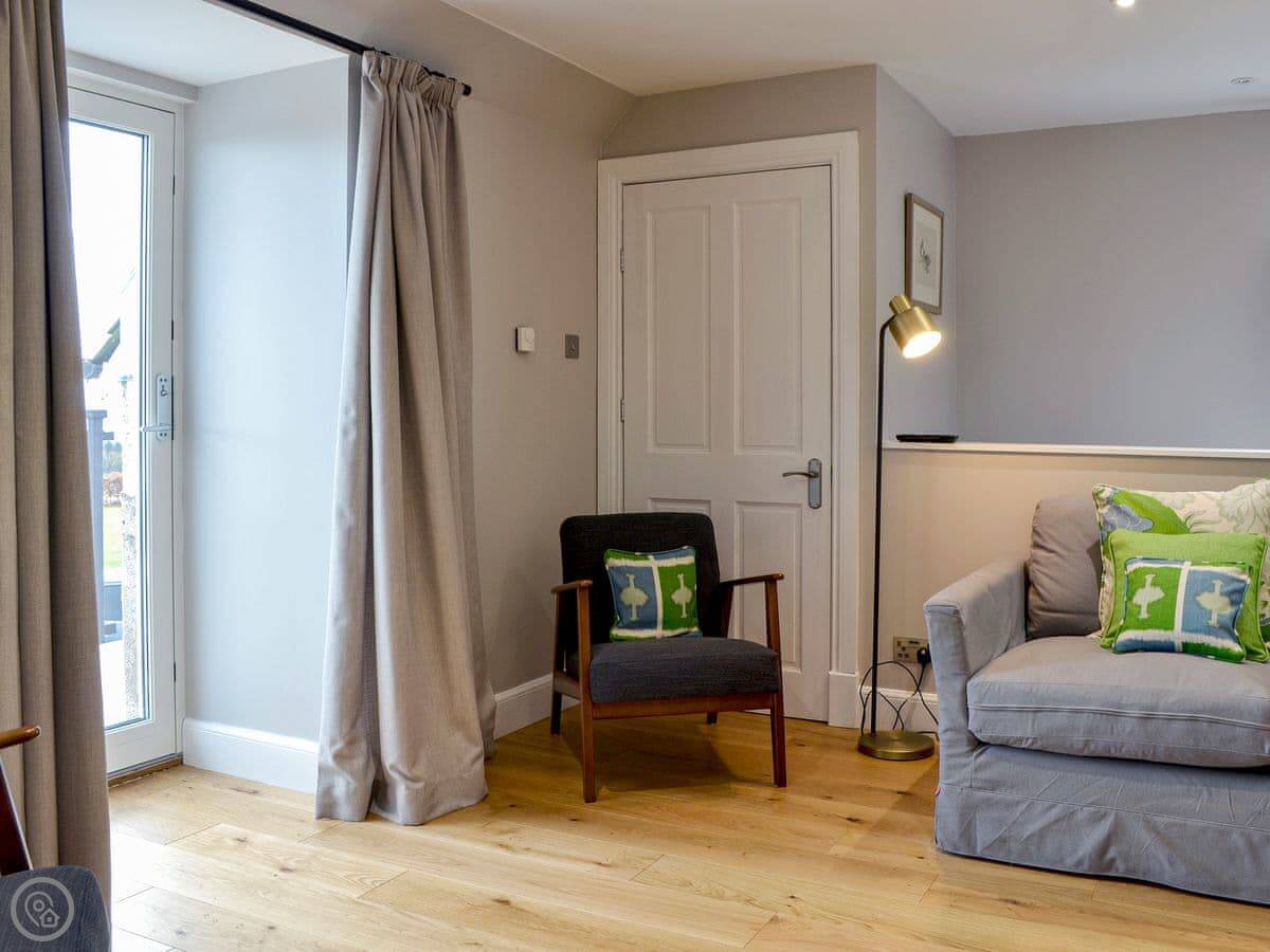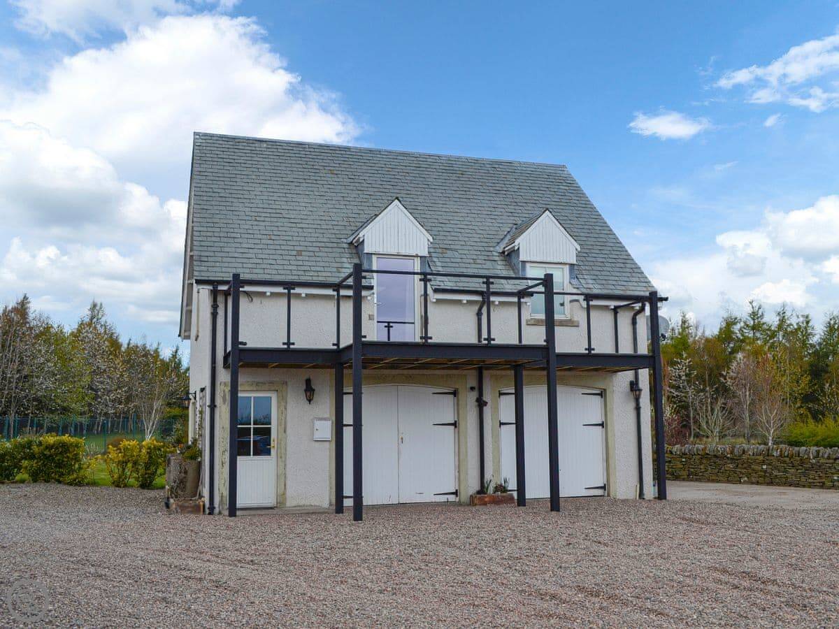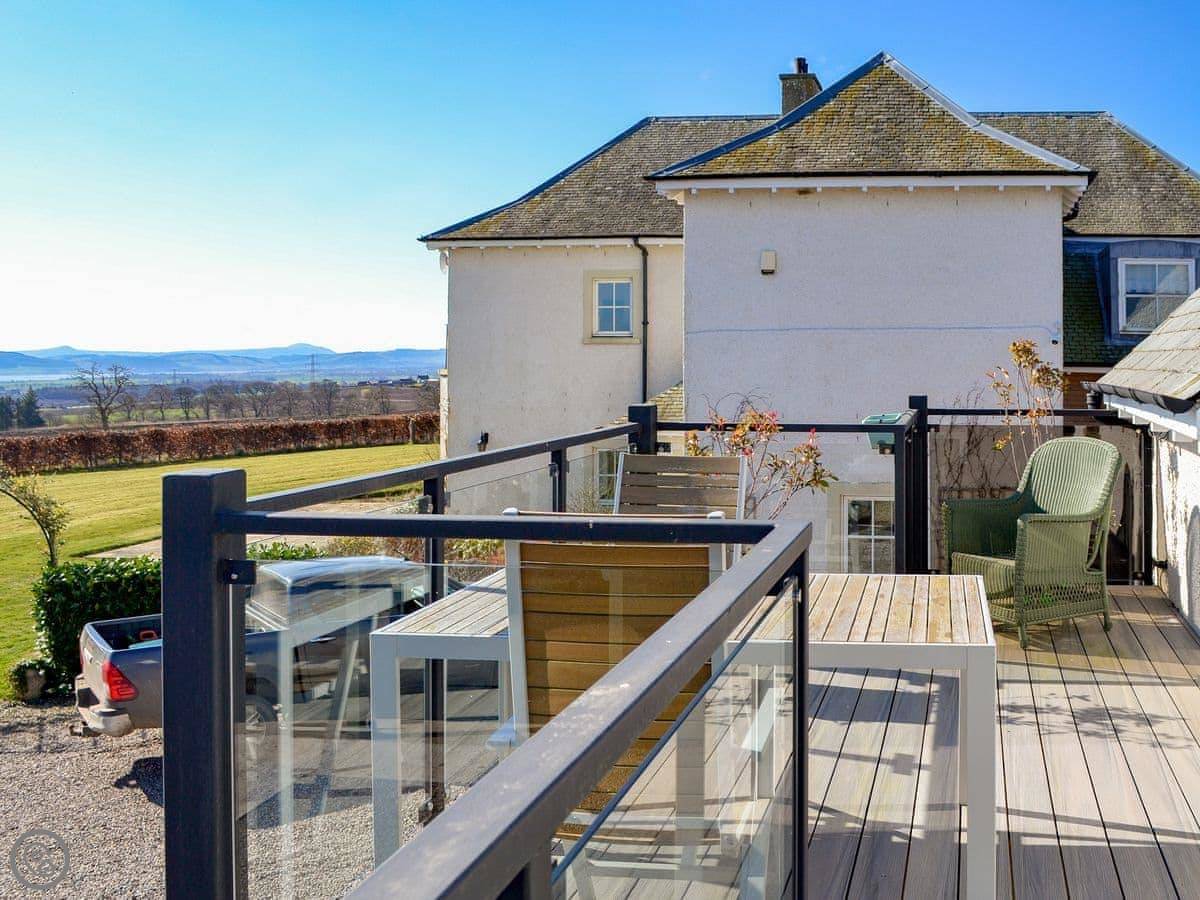 Grange Loft is a loft conversion in our house, but it's entirely separate. It's in Fowlis, a few miles north of Dundee. You're up in the eaves, so you get a good view out over the garden and the fields from the living room.