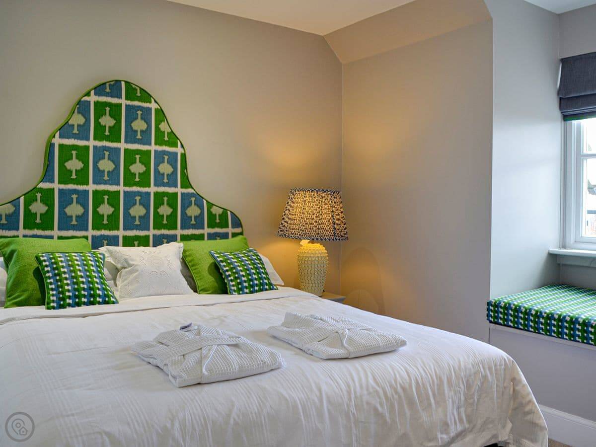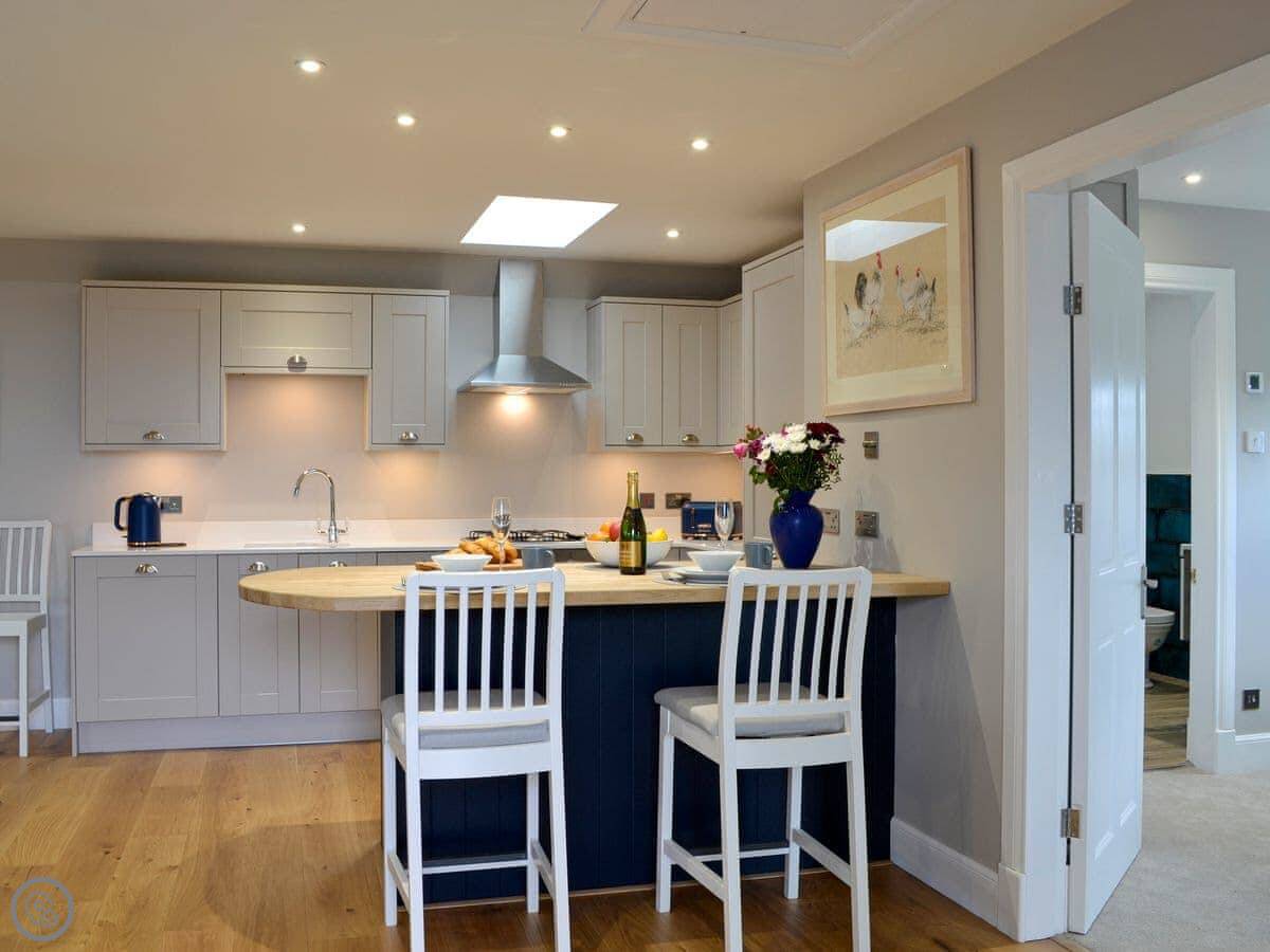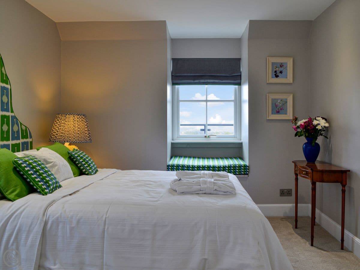 It's for two people. One bedroom with a king-size bed and an en-suite shower. It's got a 4 Star rating, so it's comfortable and well-equipped. Because it's a loft, the ceilings slope and the windows are velux. You'll need to mind your head in a couple of spots.