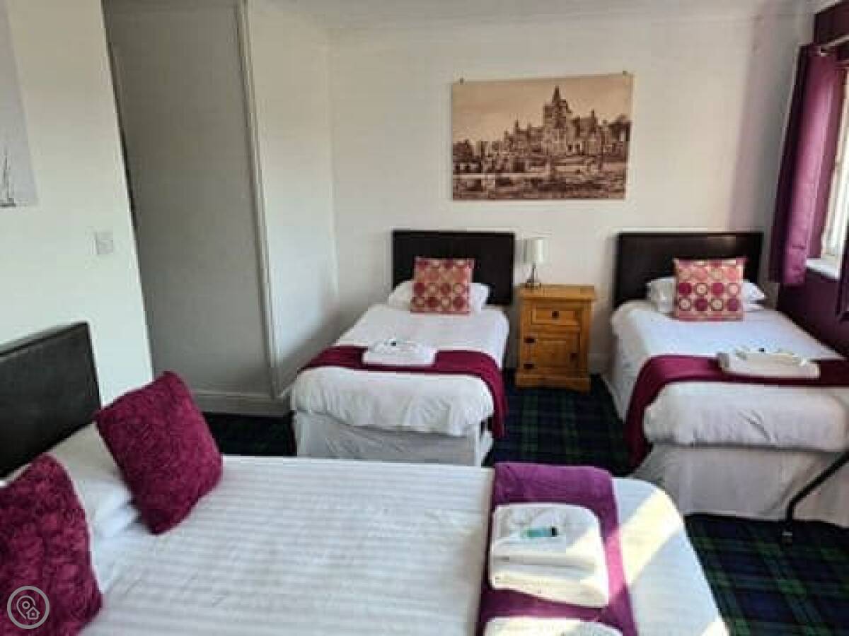 The Wild Cat is in Avoch, on the Black Isle. It's a ground floor apartment in a larger house. It sleeps twelve, but there are only three bedrooms. They're big rooms with multiple beds, so it's set up for groups or families sharing.
