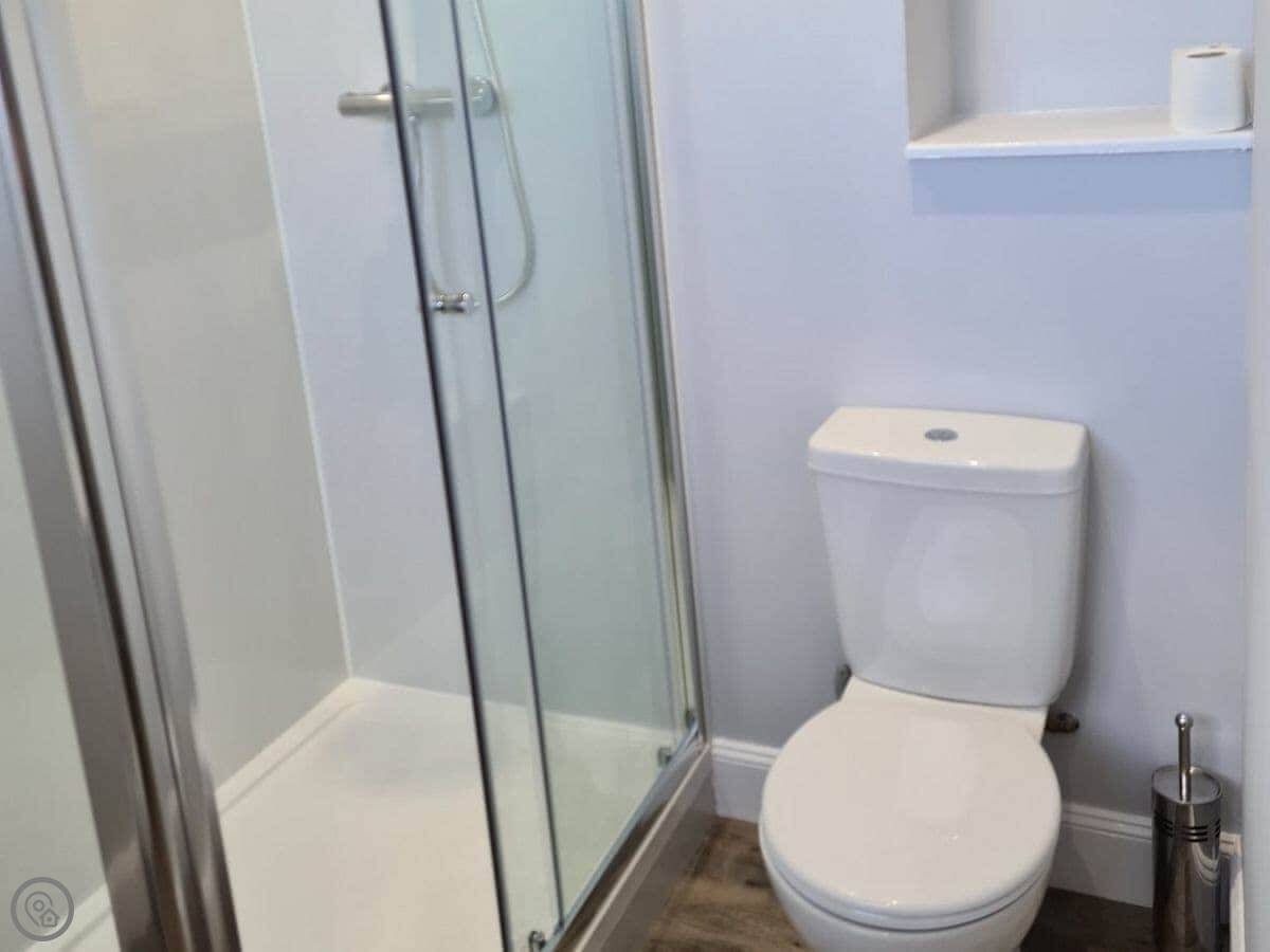 You've got your own front door. Inside, there's a big living and dining space. The kitchen has what you need. There's a large conservatory with a wood burning stove, which is a nice spot. Two bathrooms, one with a shower. The garden and patio are shared with the other property in the building. There's a BBQ area you can use.