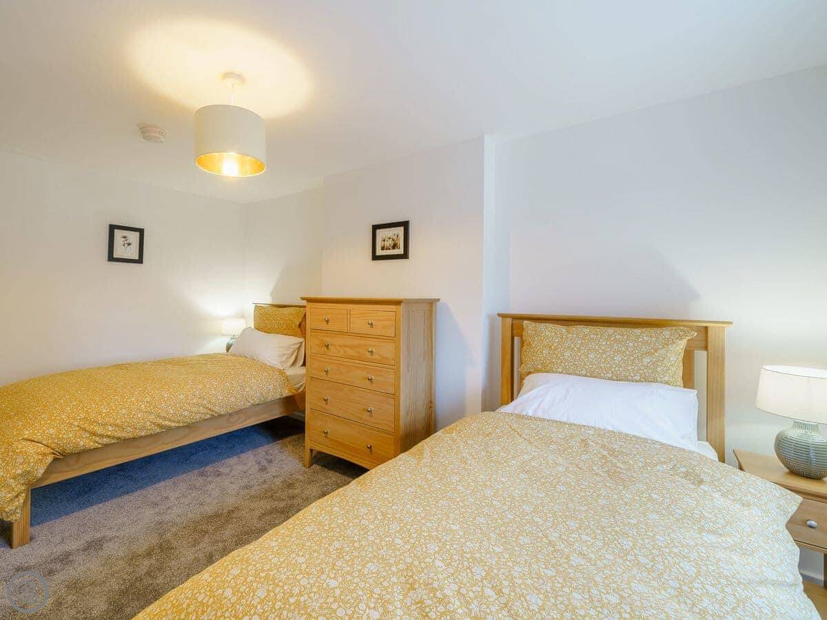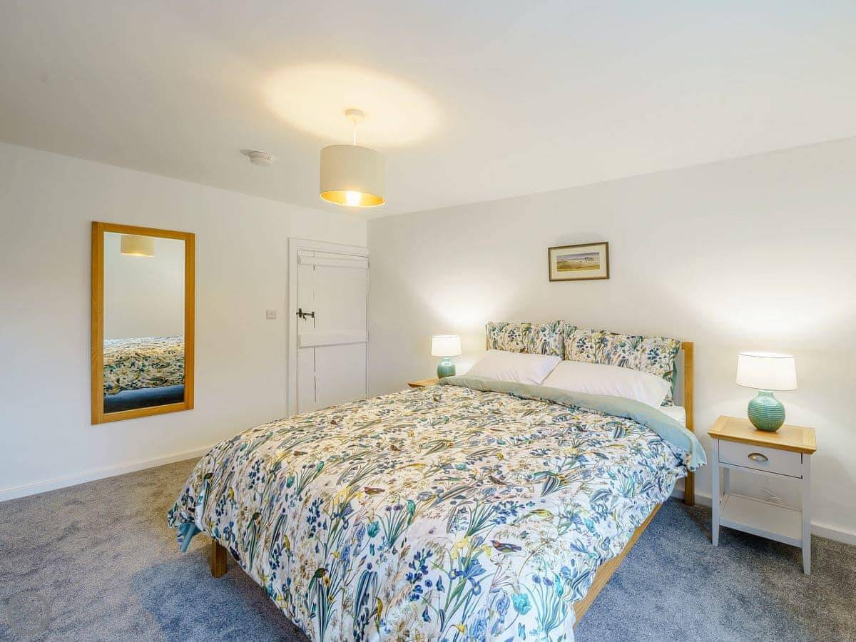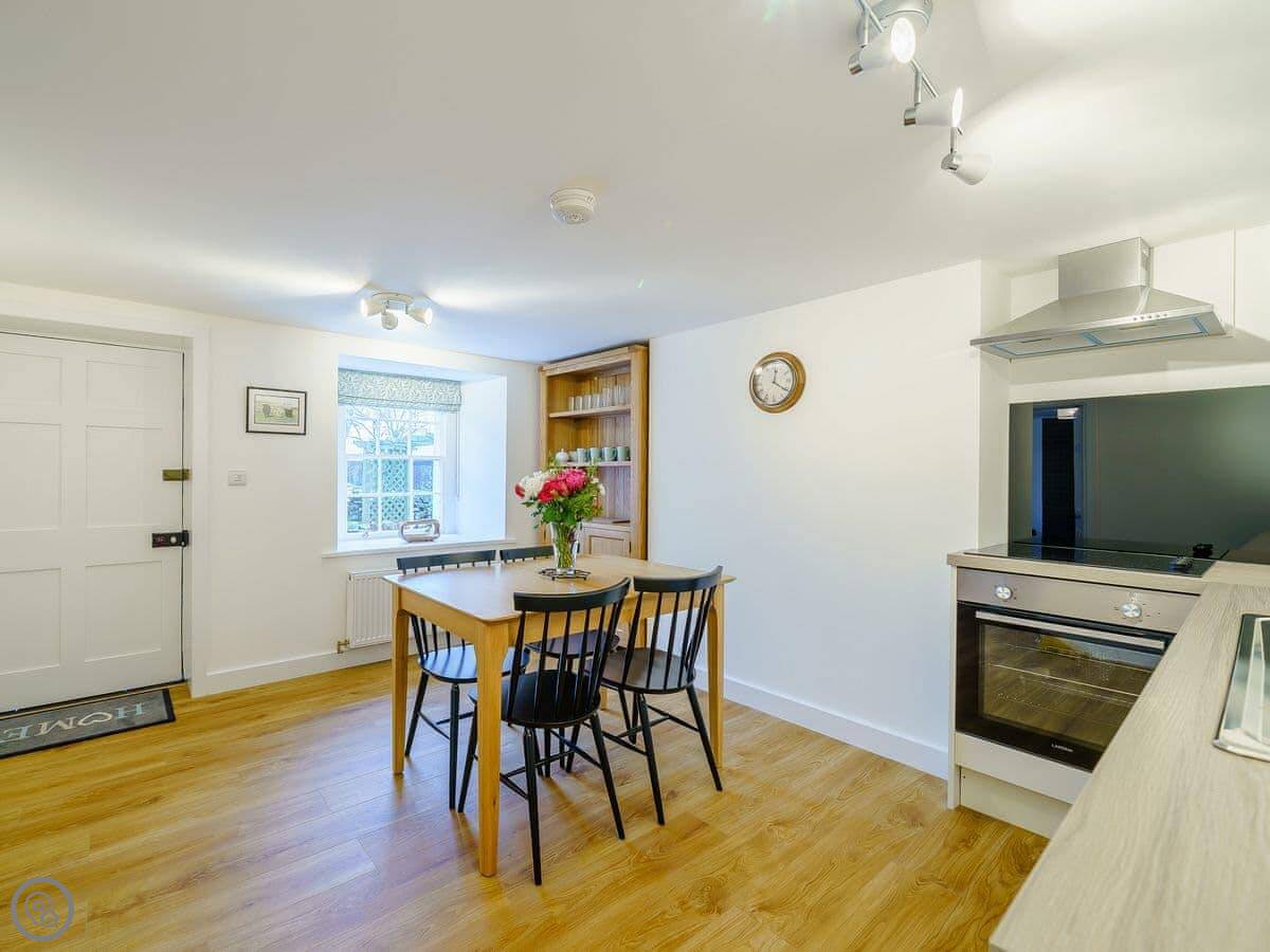 It sleeps four. Two bedrooms upstairs and one bathroom with a shower. It's a 4 Star place, which means it's comfortable and has everything you need. It's a proper old cottage though, so mind your head on the shower room doorframe. The stairs are typical for a place like this too.