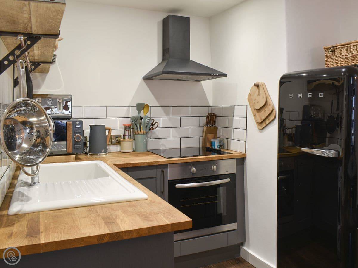 It sleeps four, with two bedrooms and one bathroom. It’s got a 4 Star rating. It was refurbished a few years ago, so the kitchen and bathroom are in good order. It’s furnished with some older pieces and paintings, so it feels like a proper place, not a blank box.