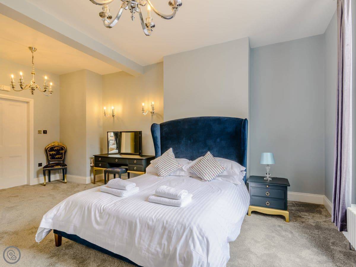 It's a big place, sleeps ten, five bedrooms. There are three bathrooms. It's got a 4 Star rating, which means it's well looked after and has everything you'd expect. It's a listed building so the walls are thick and the stairs are the usual old-house type, a bit steep and winding.