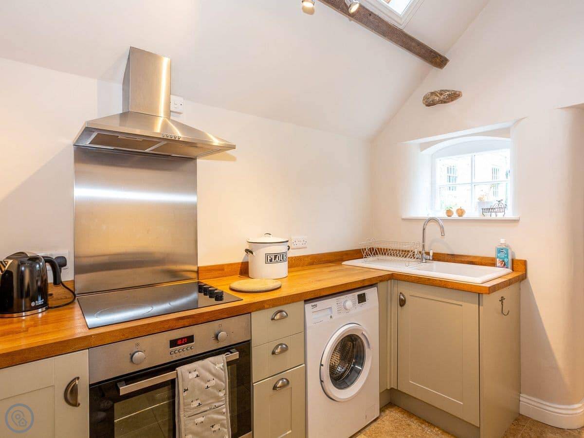 What's here: the cottage has its own parking, a washing machine, WiFi and a TV. Bedding and towels are included. No pets, I'm afraid.