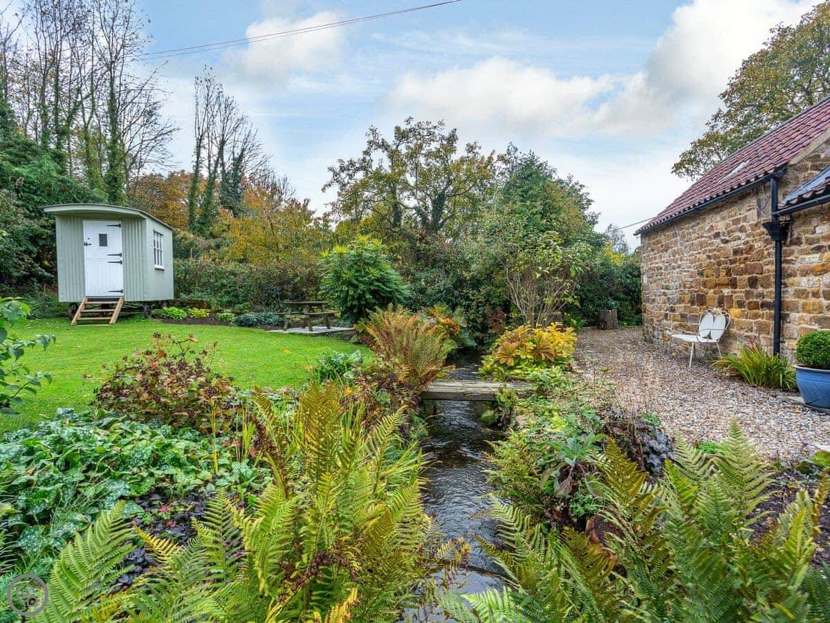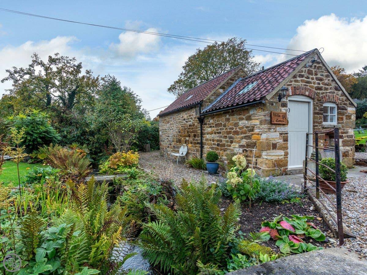 Wren Cottage is in Thirlby in North Yorkshire. I live next door in the main house. The cottage is detached and you have your own garden. It looks out over the cottage gardens we've got here, and there's a stream at the bottom.