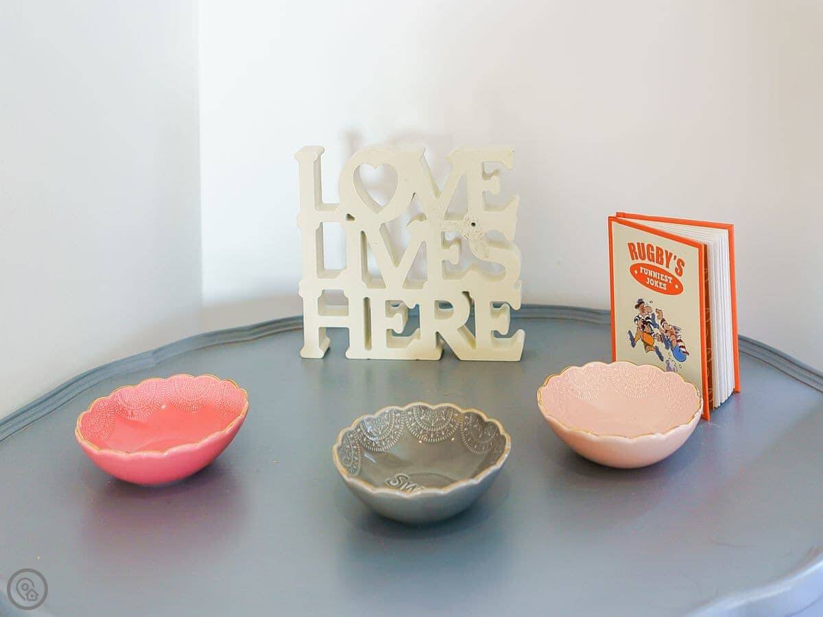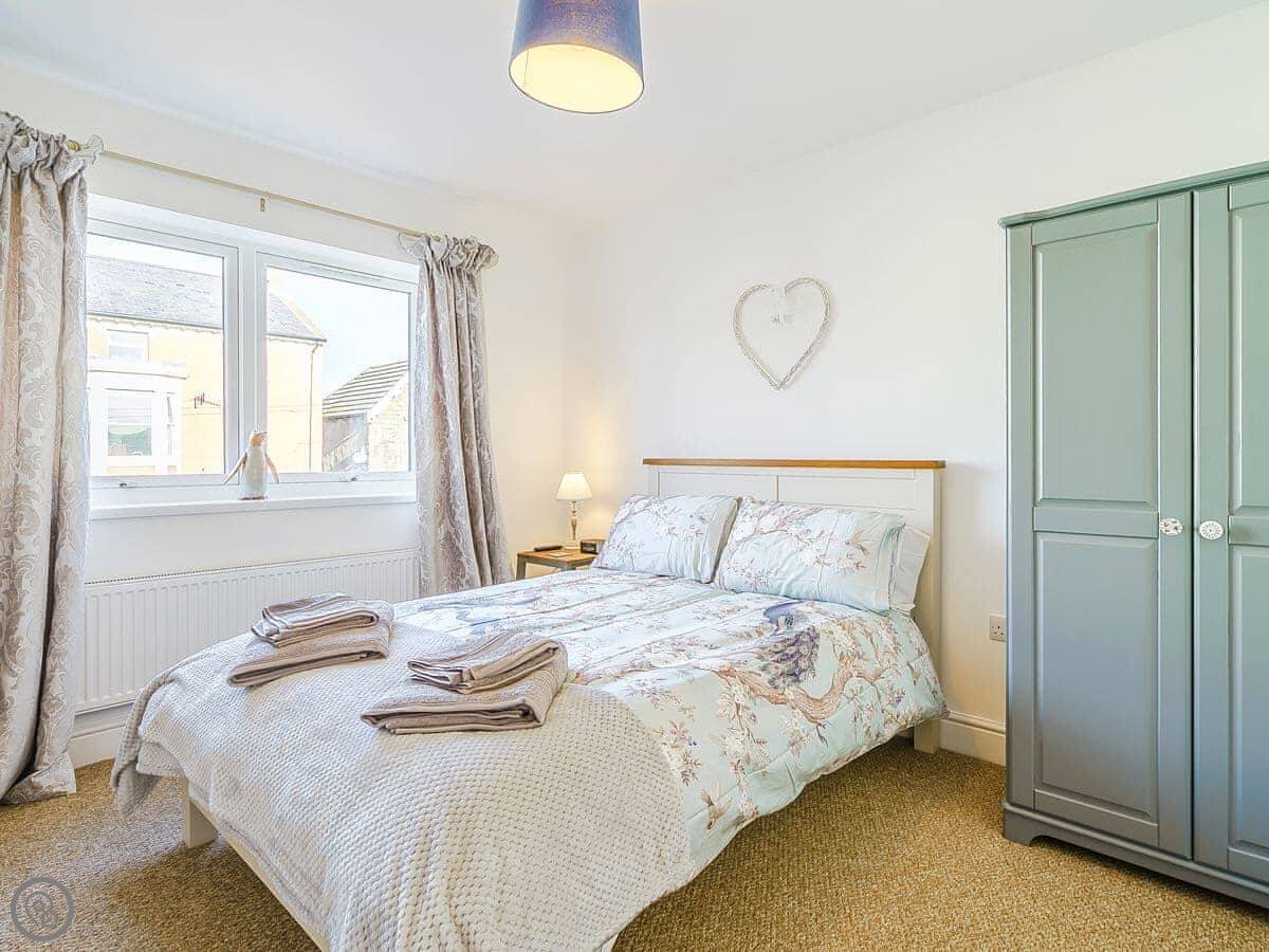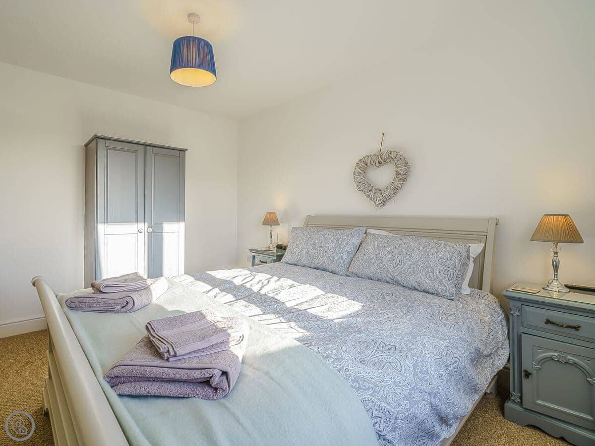 It sleeps six, with three bedrooms and two bathrooms. It's a 4 Star place, so it's comfortable and well-equipped. There's a downstairs loo and shower, and a bathroom upstairs. The garden is enclosed, which is handy.