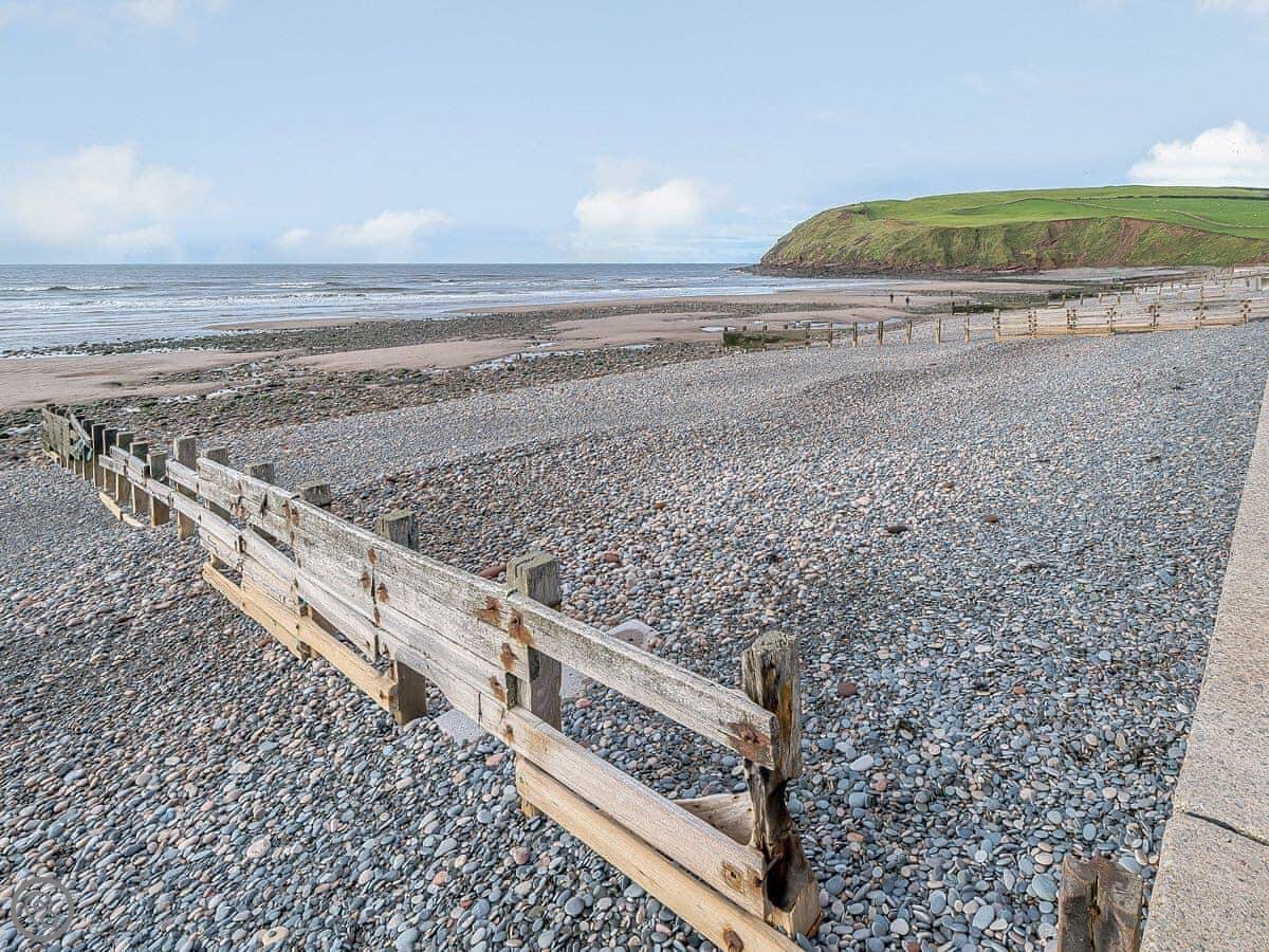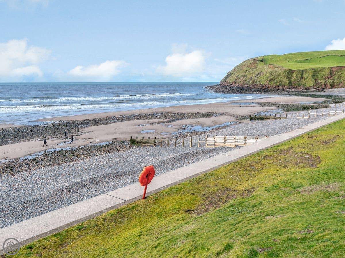 The beach is about two hundred yards away. It's a shingle and sand beach. There's a cafe there for a simple bite to eat. The RNLI station is right next to it. The path along the cliffs to the RSPB reserve starts from the beach. RSPB St Bees Head is good for seabirds. It's also the start of the Coast to Coast Walk.