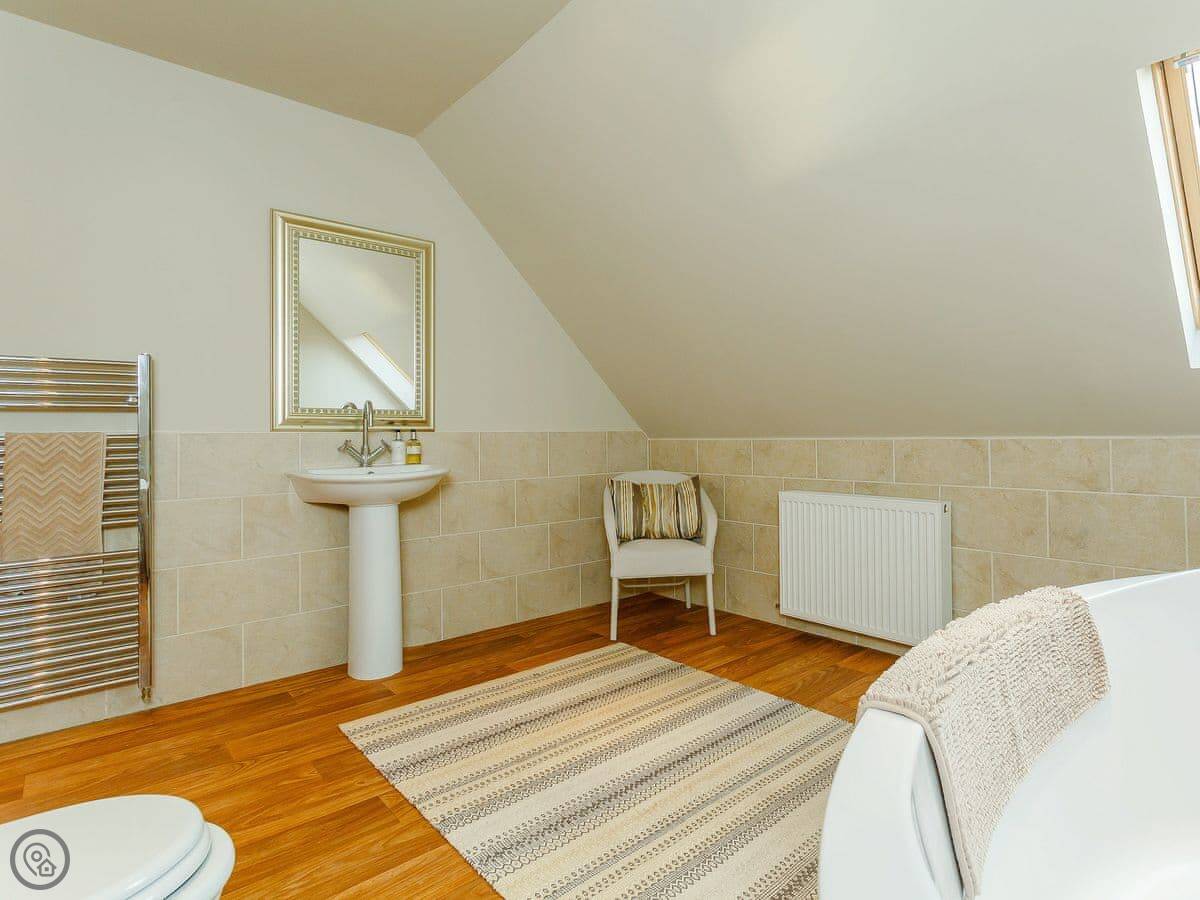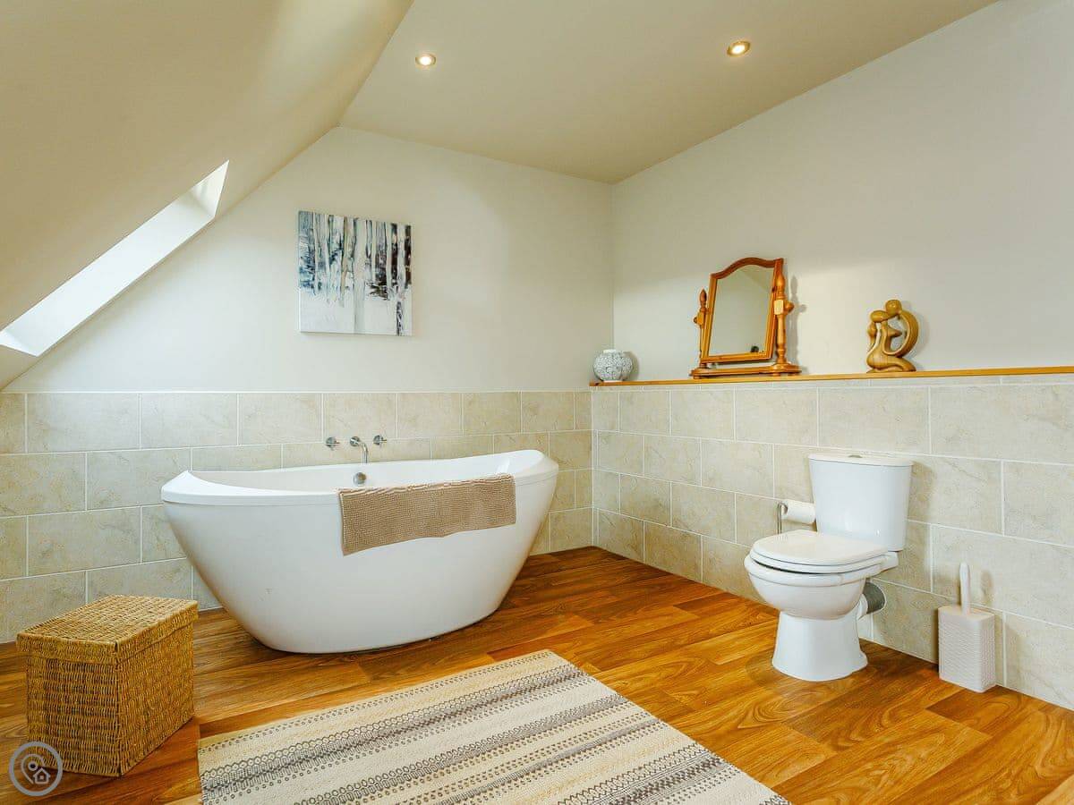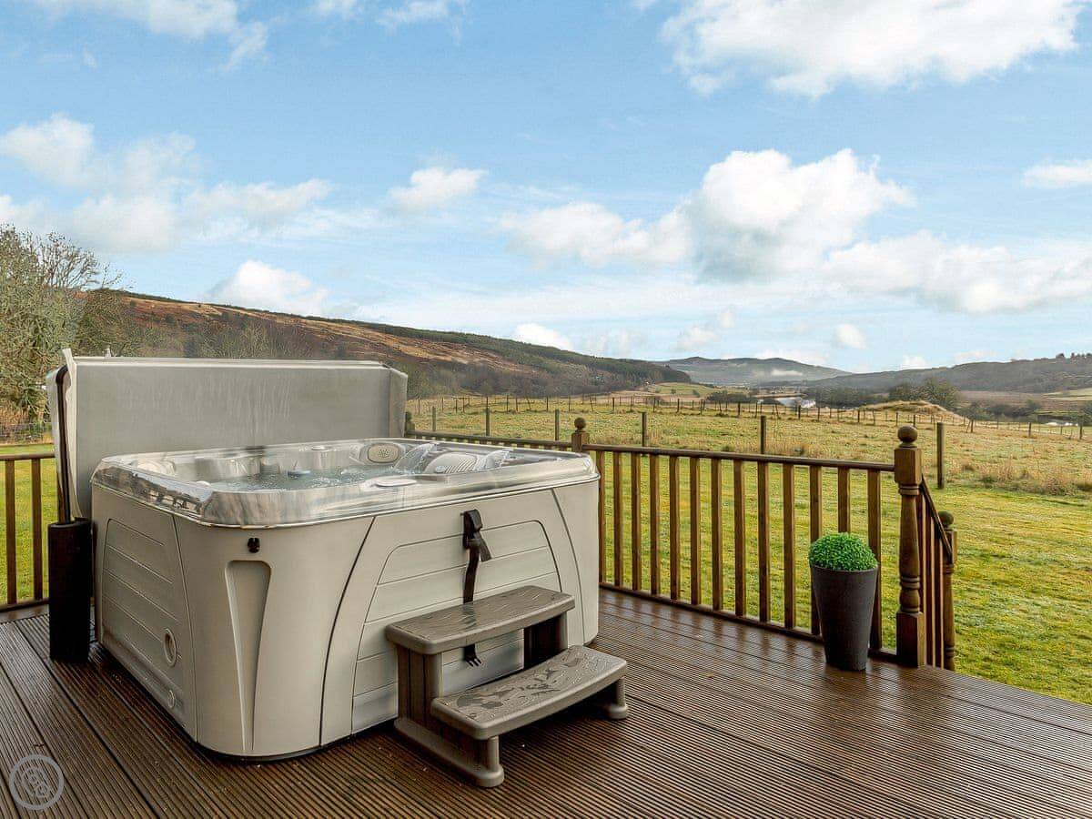 Outside, the garden at the back is fully fenced, so it's safe for dogs and kids. There's a hot tub on the decking that fits six. Plenty of parking at the front.