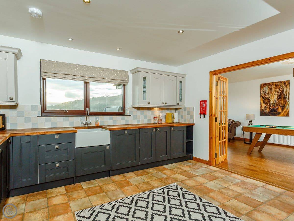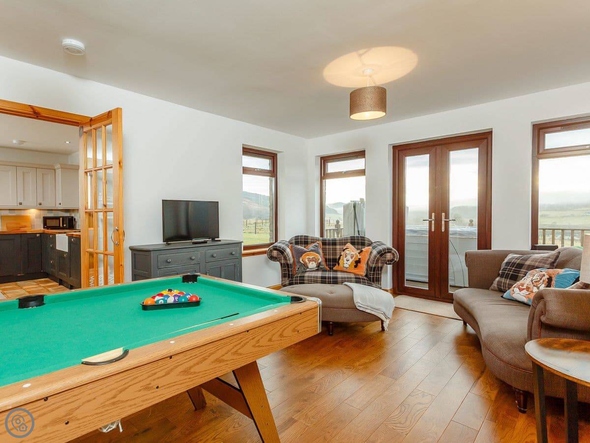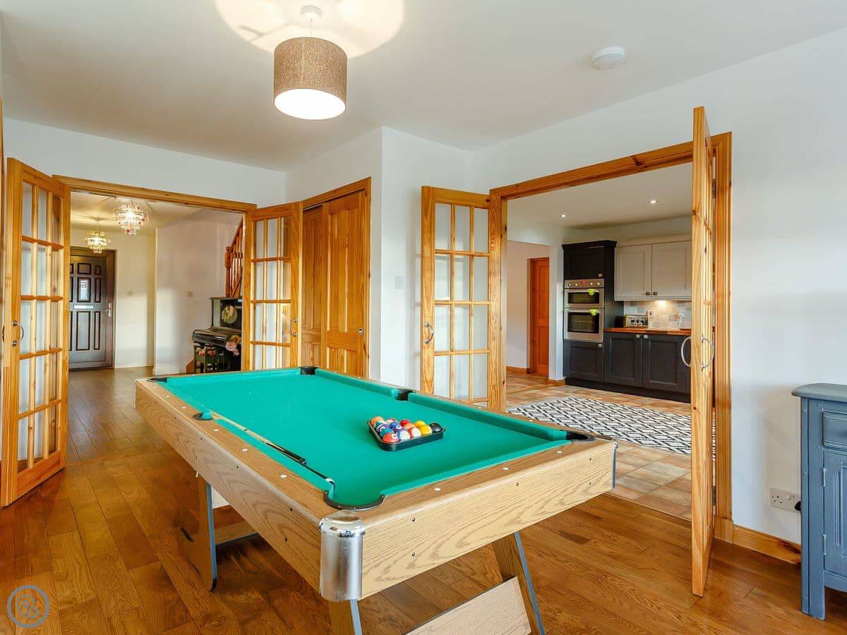Inside, there's a games room, a utility room, and the kitchen is large. It's all on one level once you're in, and the entrance has no steps, which is good for wheelchairs or if you don't like stairs.