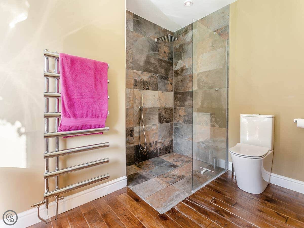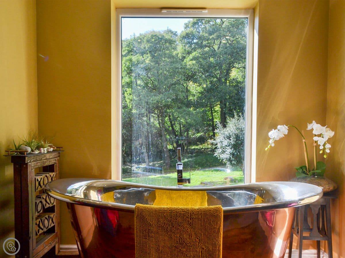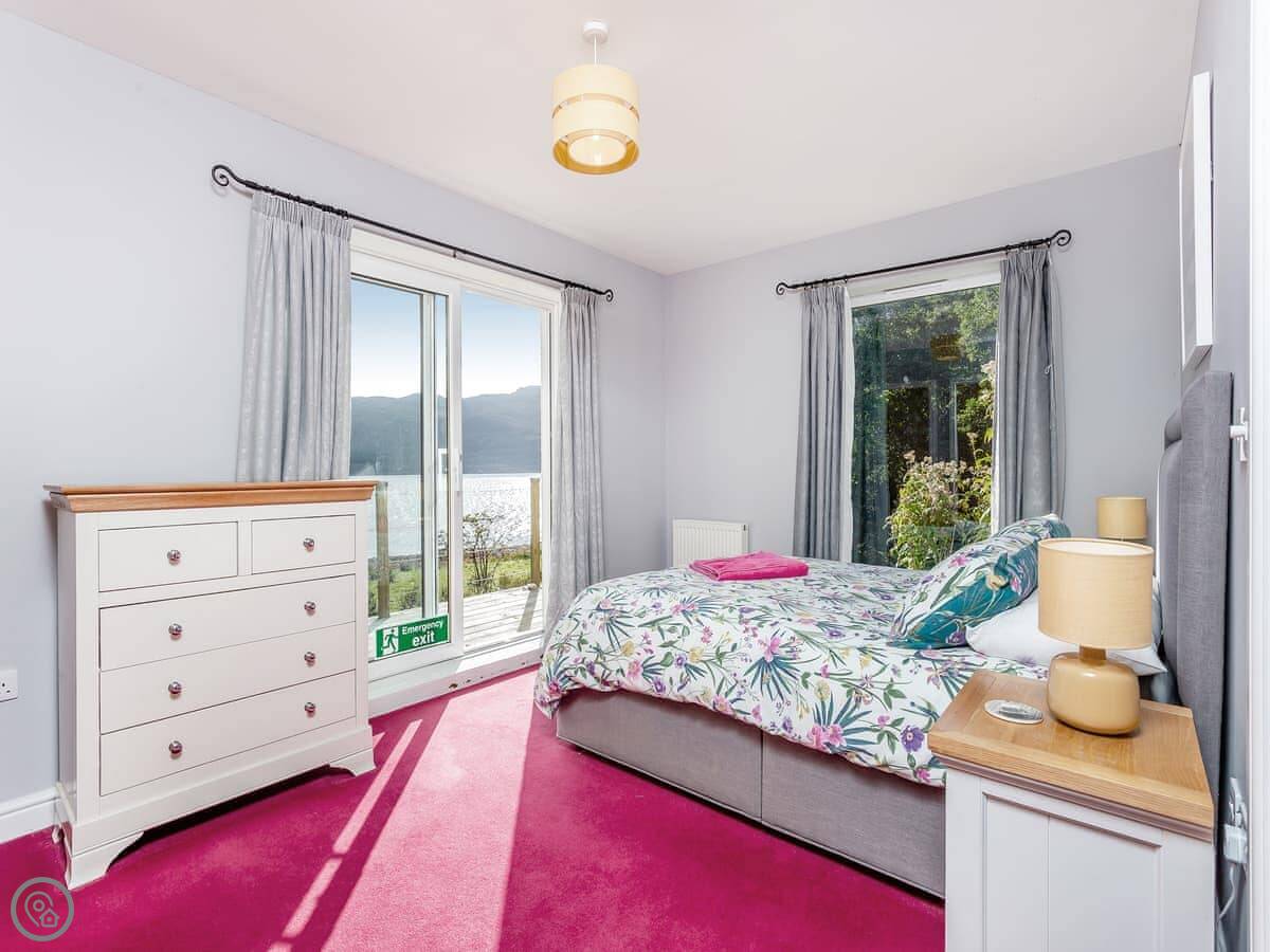 The master bedroom has an en-suite bathroom with a freestanding bath. You can see the loch from the bath. That bedroom also has a private balcony. There's another double room and a twin room, plus a separate shower room.
