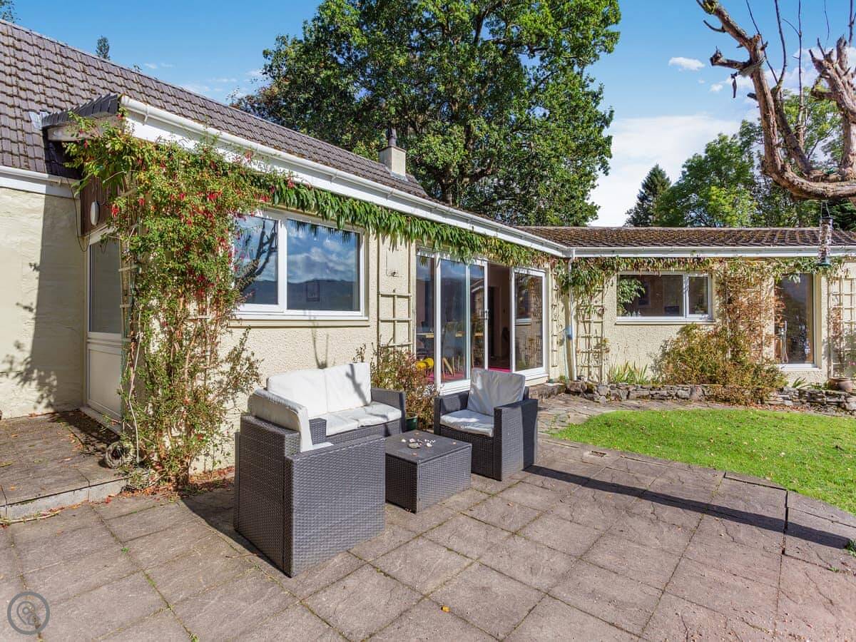 The garden is sizeable and enclosed. There's a patio by the house. A path leads down to a boardwalk that goes out to a point with a seating area. It's a good spot to sit with a drink.